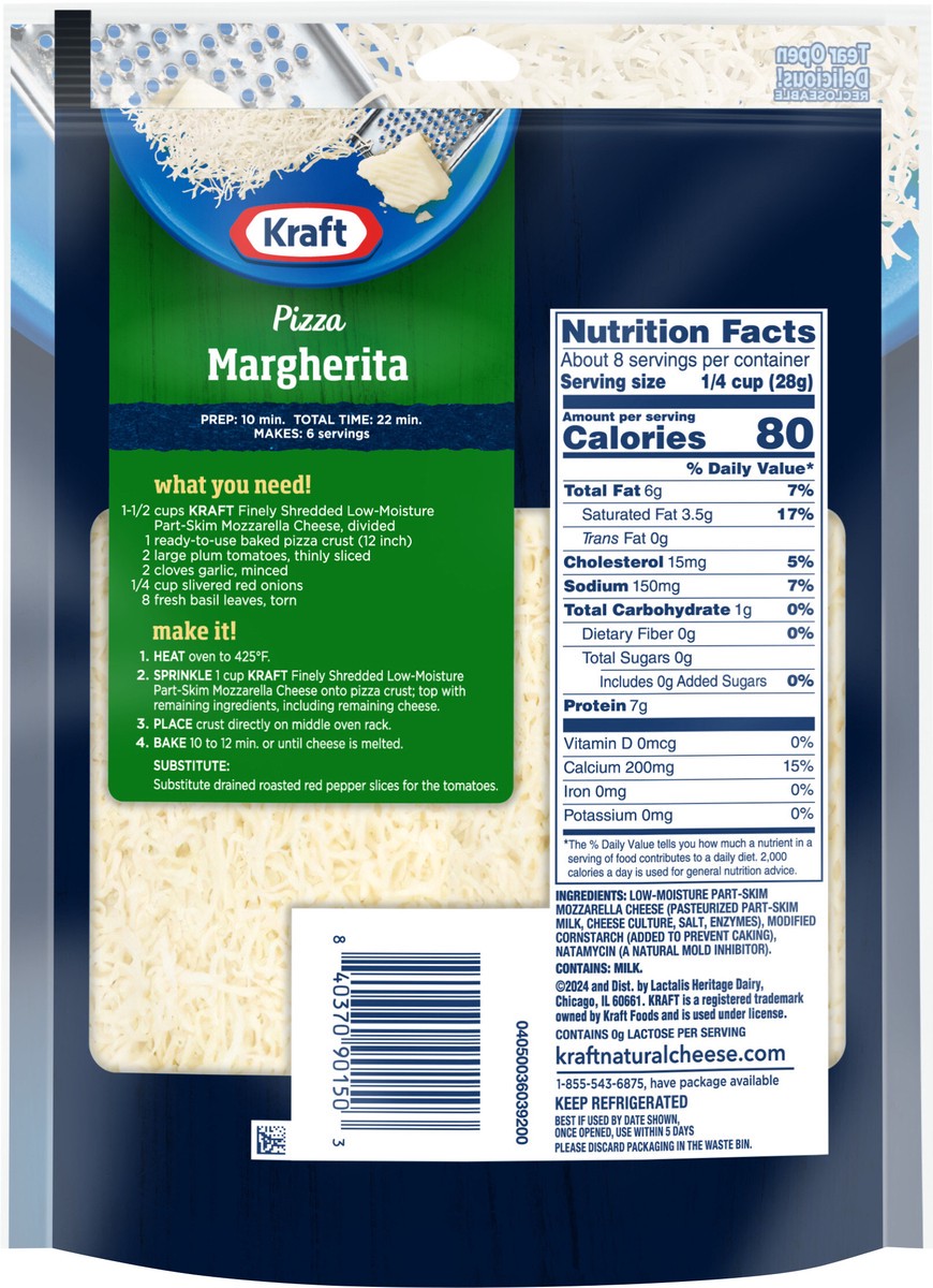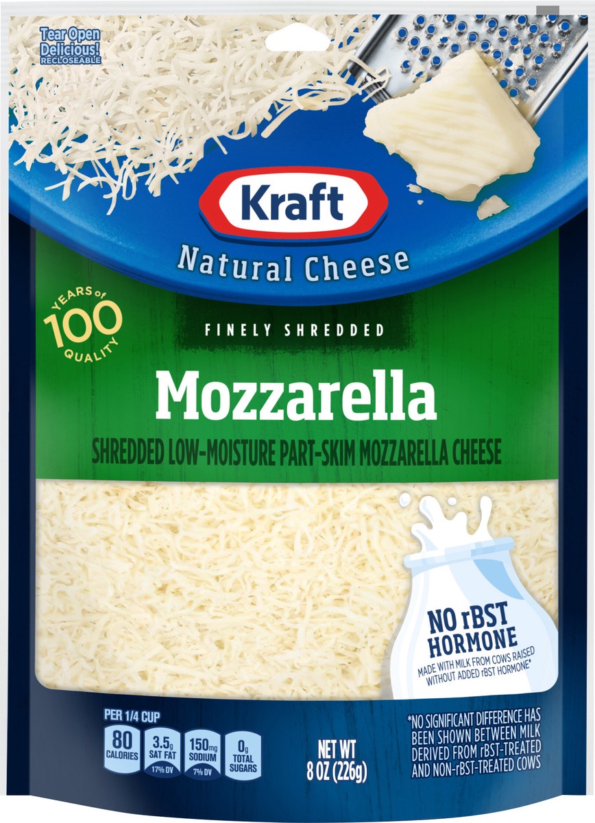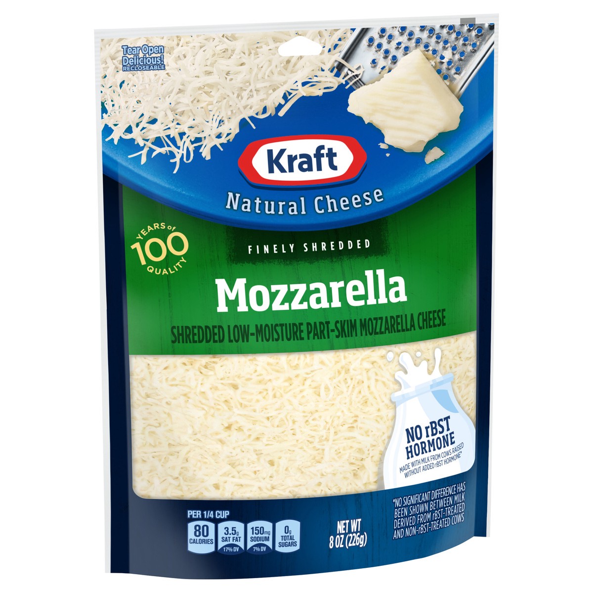 - Enhance your next meal with Kraft Finely Shredded Natural Mozzarella Shredded Cheese