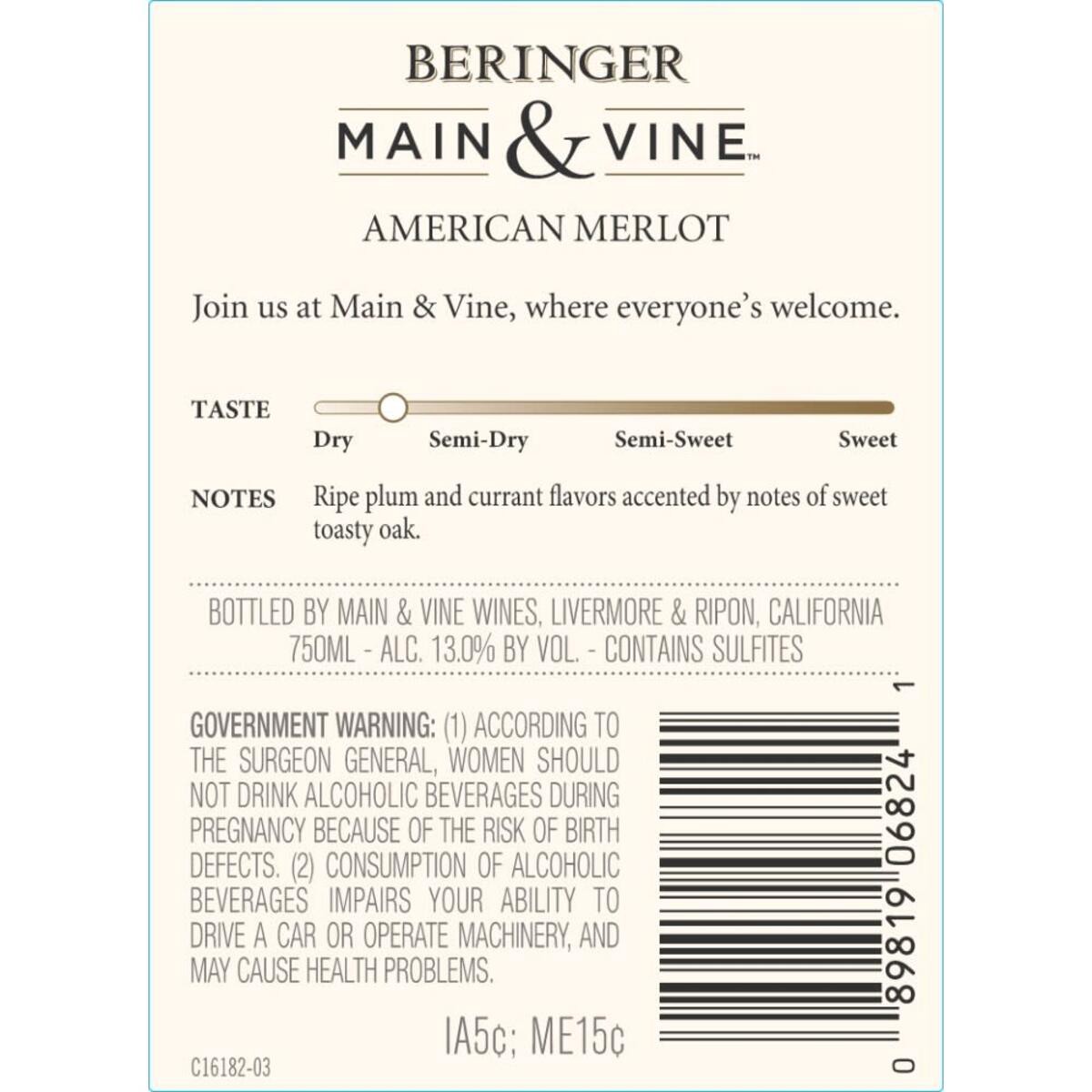 - One 750ml Bottle of Main & Vine™ Merlot Red WineMain & Vine™ Merlot Red Wine has sweet