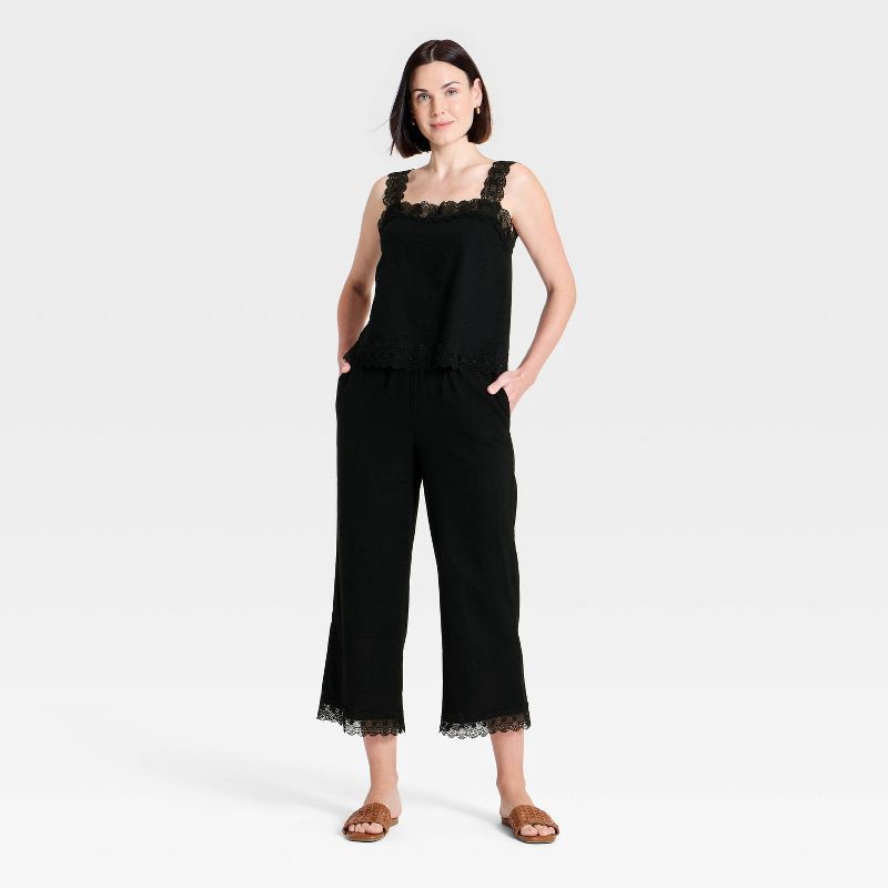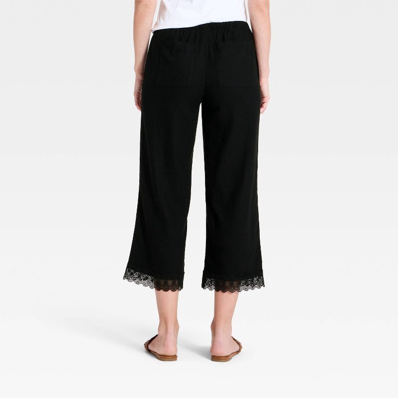 Women's Lace Trim Pull-On Pants - A New Day™ Black XS