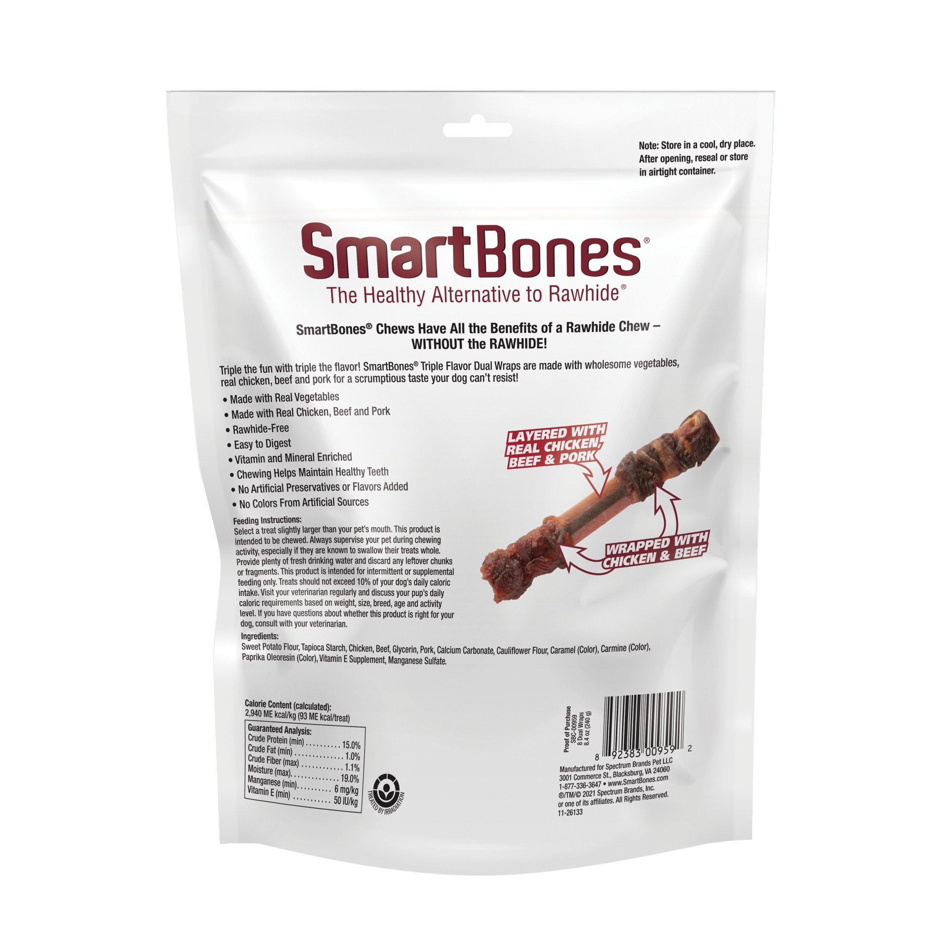 No-rawhide SmartBones Triple Flavor Dual Wraps are triple the fun with triple the flavor! Made with wholesome vegetables, these rawhide-free chews are layered with real chicken, beef and pork and wrap…