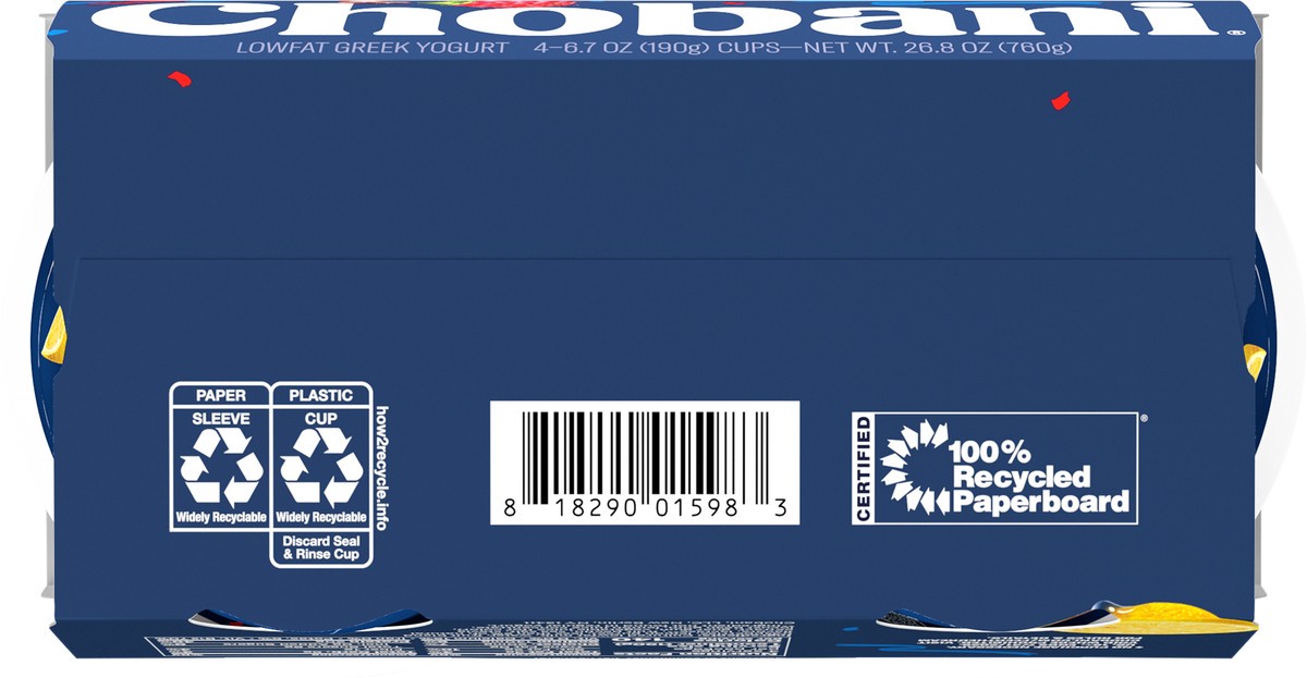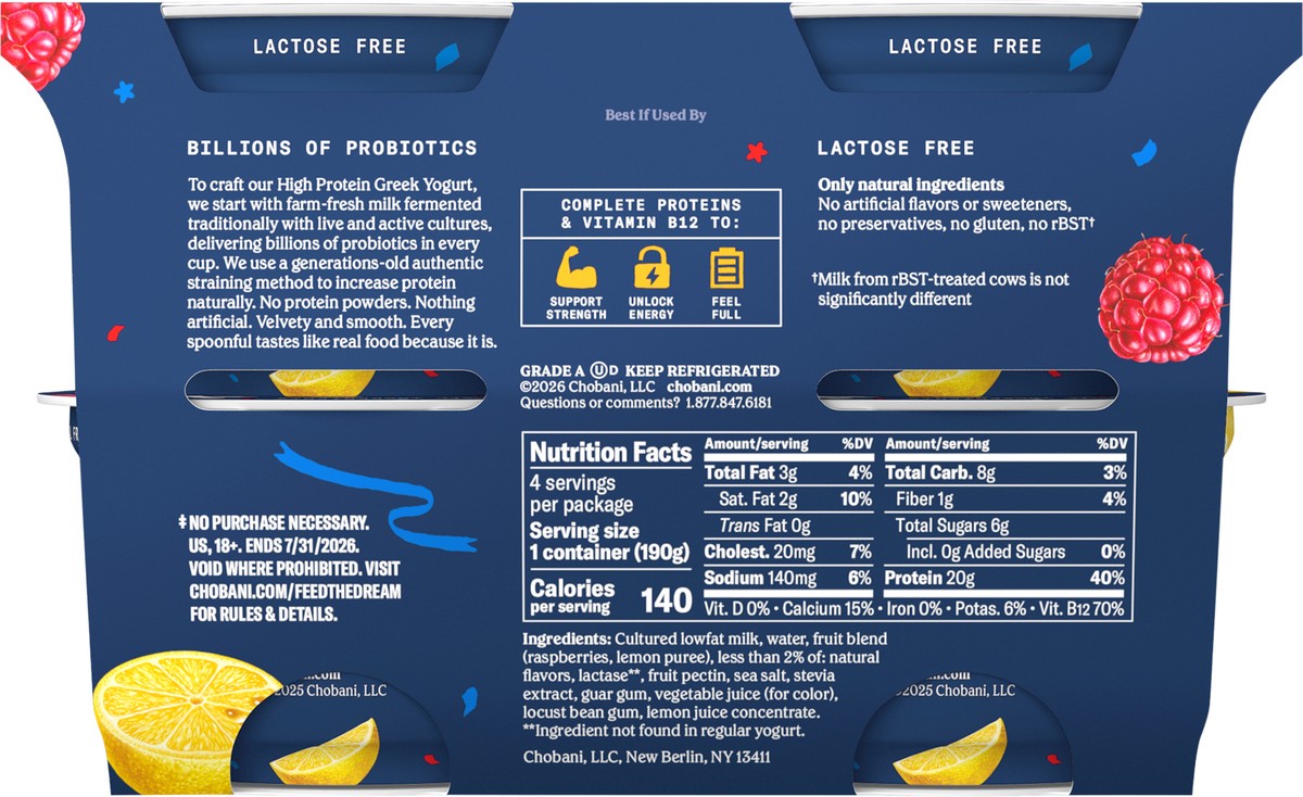 Chobani Lowfat Greek Raspberry Lemon Yogurt Value Pack 4 - 6.7 oz Cups