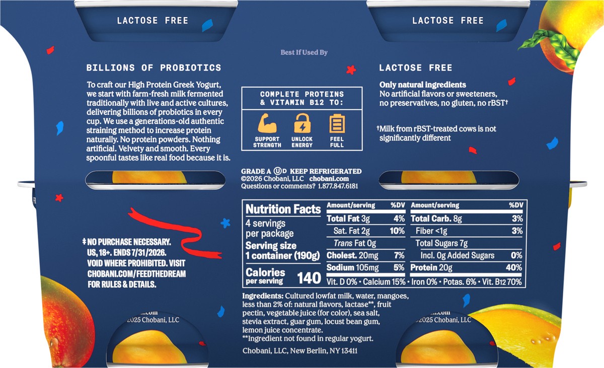Chobani 20g Protein Lowfat Greek Yogurt Mango 6.7oz 4PK