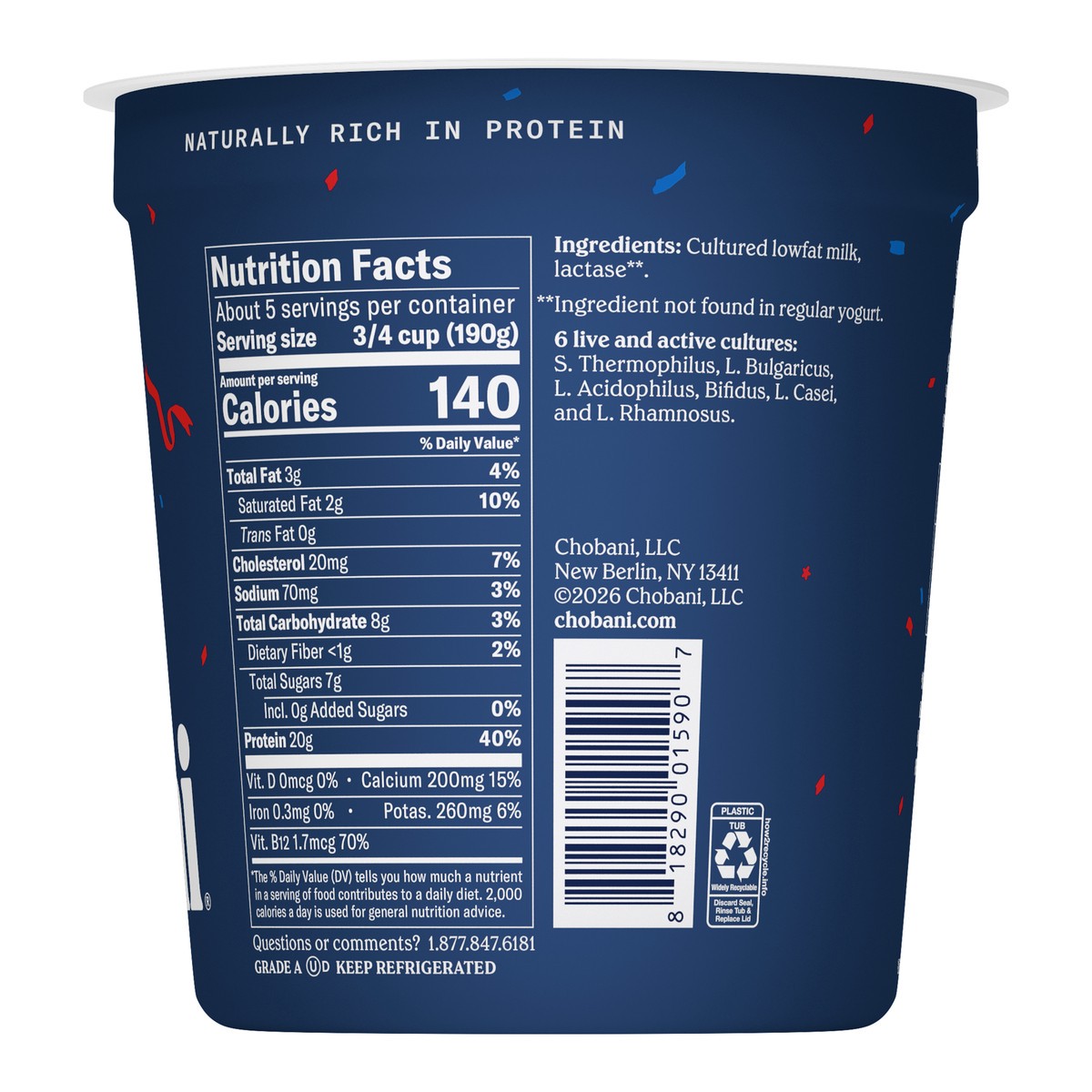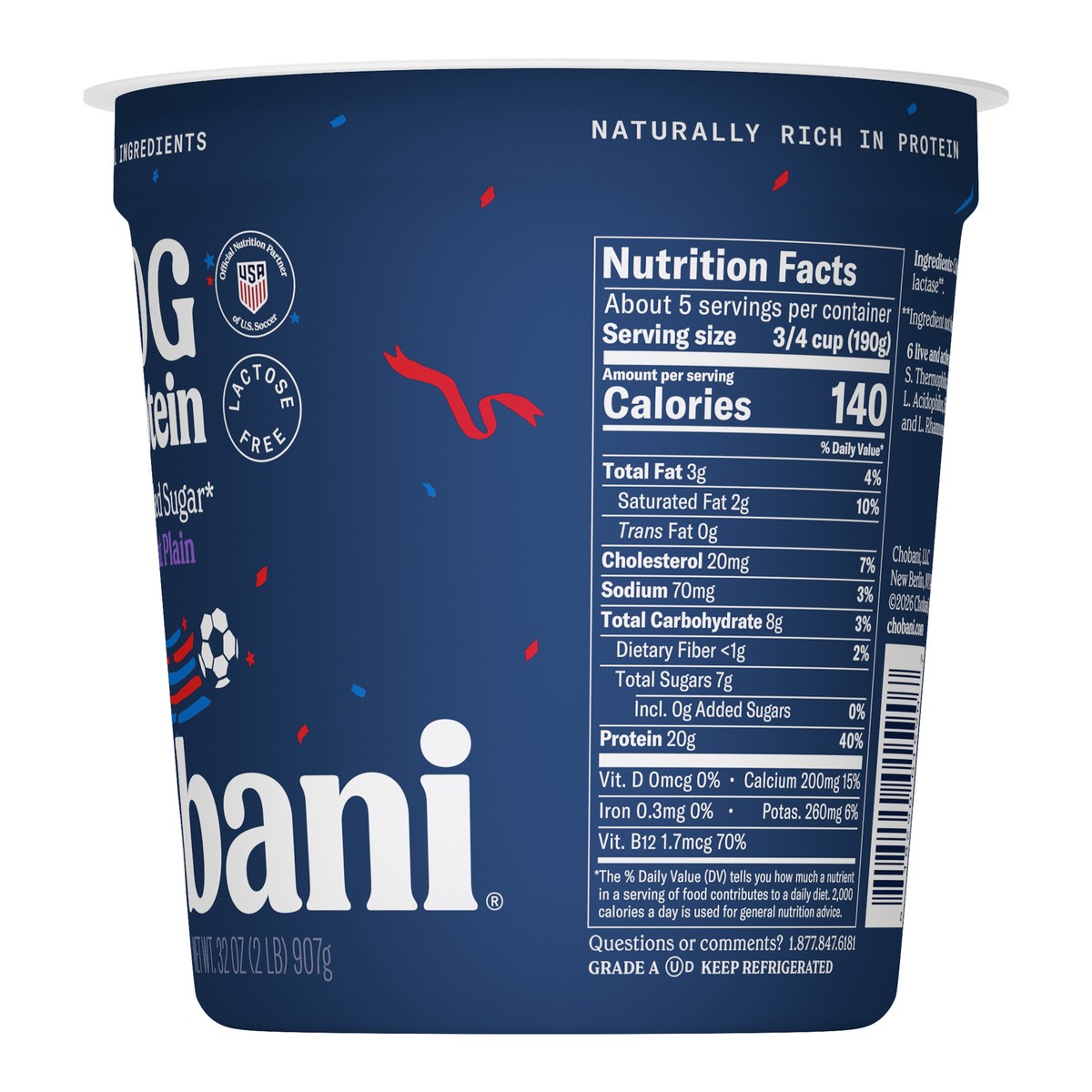 Chobani 20g Protein Lowfat Greek Yogurt Plain 32oz
