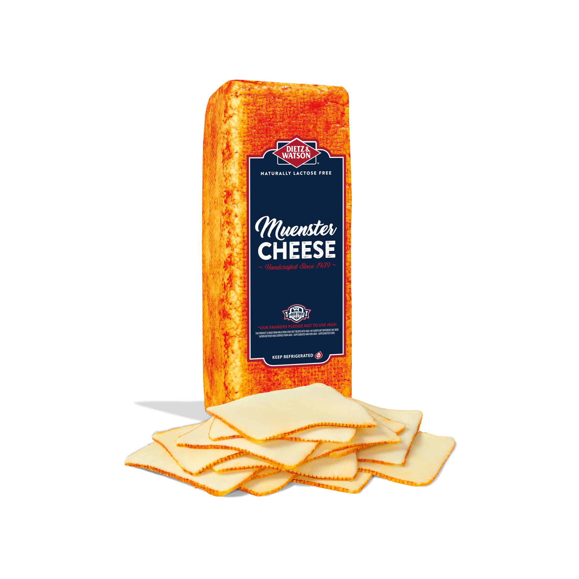 Dietz & Watson Naturally Lactose Free Muenster Cheese, Handcrafted Since 1939. Keep Refridgerated.