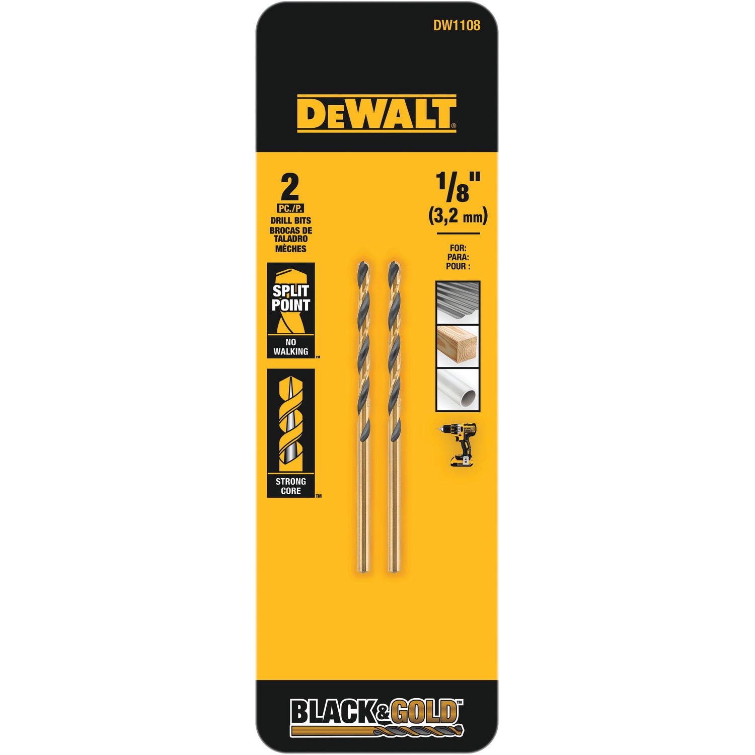 DEWALT 2 -Piece 1/8-in x 2-3/4-in Black and gold coated HSS Jobber length Twist Drill Bit