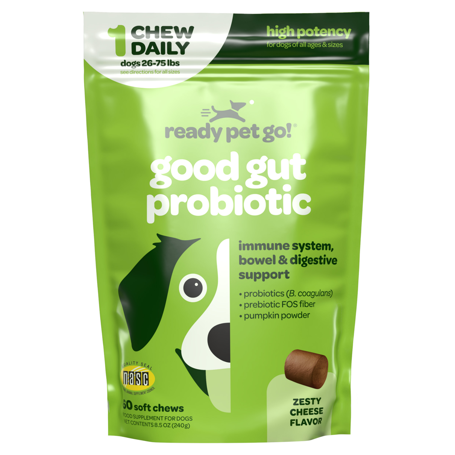 Ready Pet Go Good Gut Probiotic Chews, Zesty Cheese, 60 Ct.
