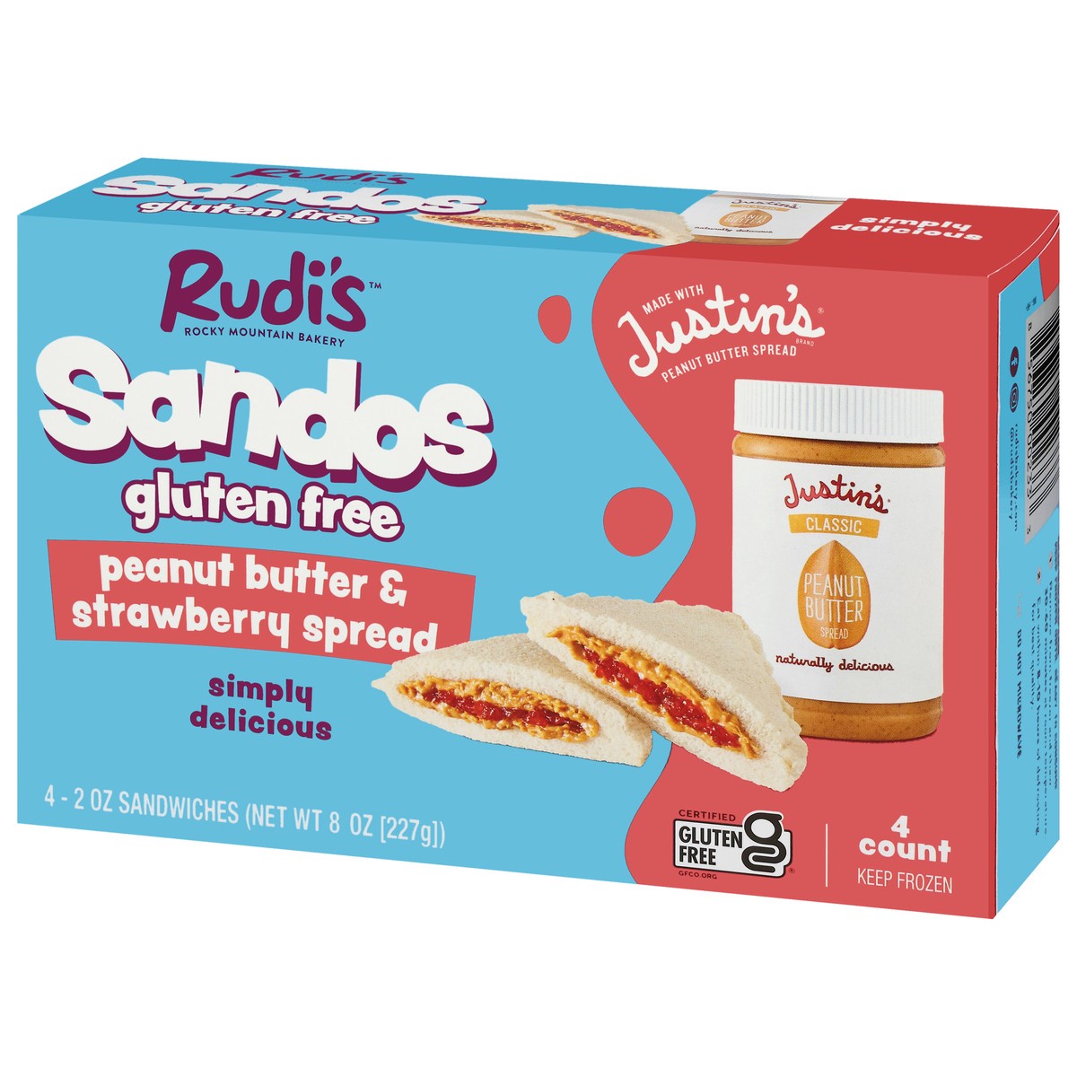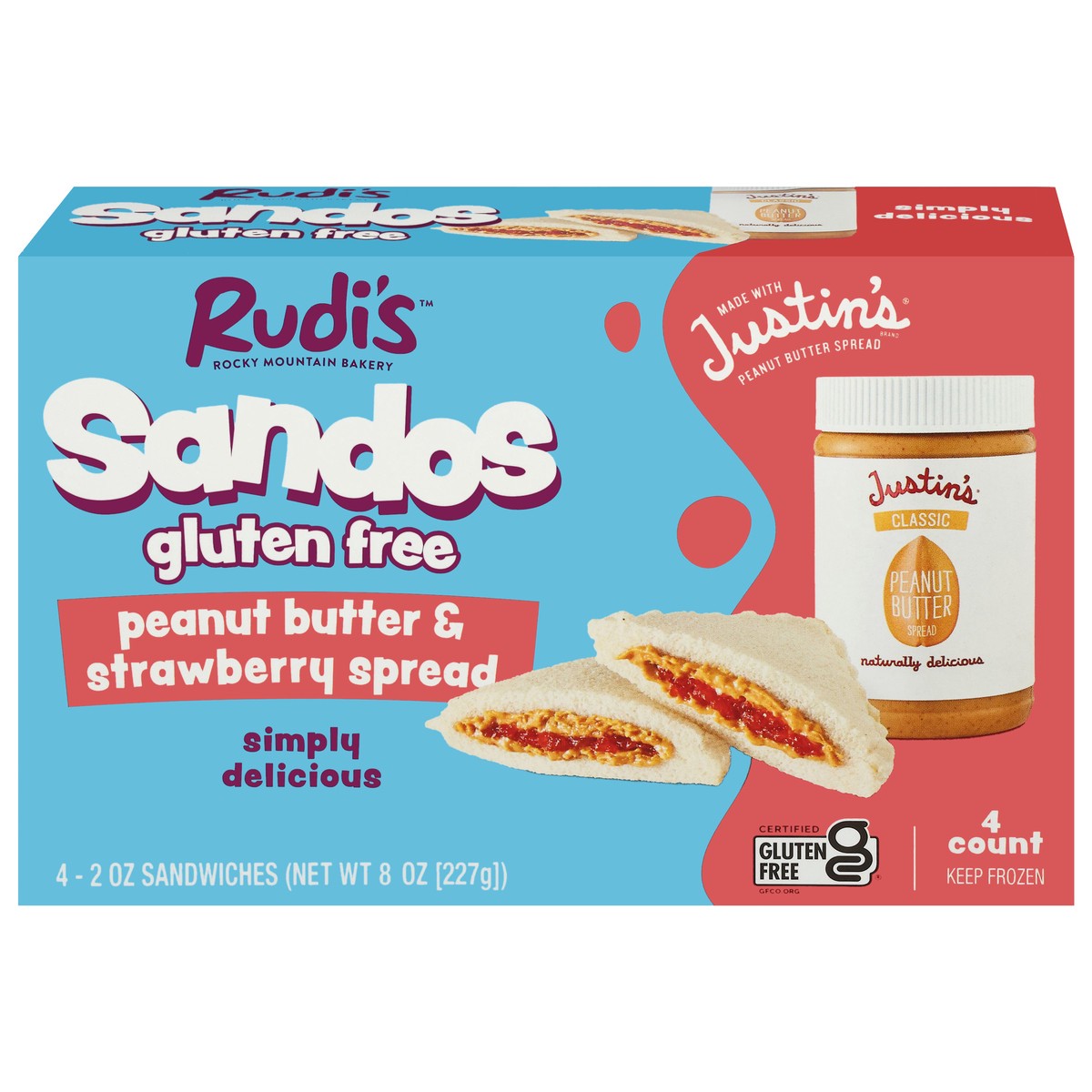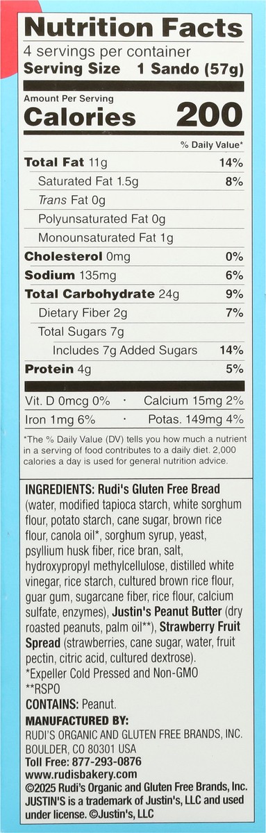 Rudi's Gluten Free Peanut Butter & Strawberry Spread Sandwiches - 4 - 2 oz Each