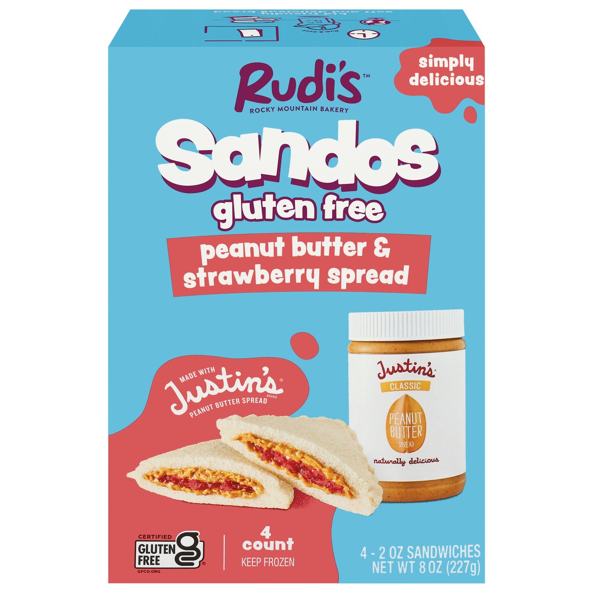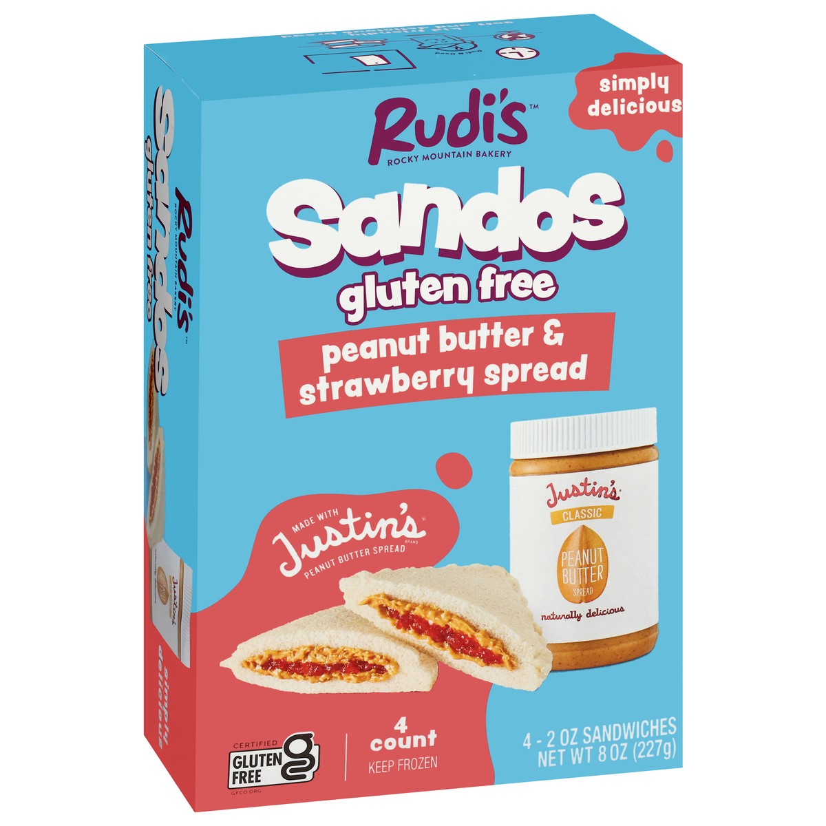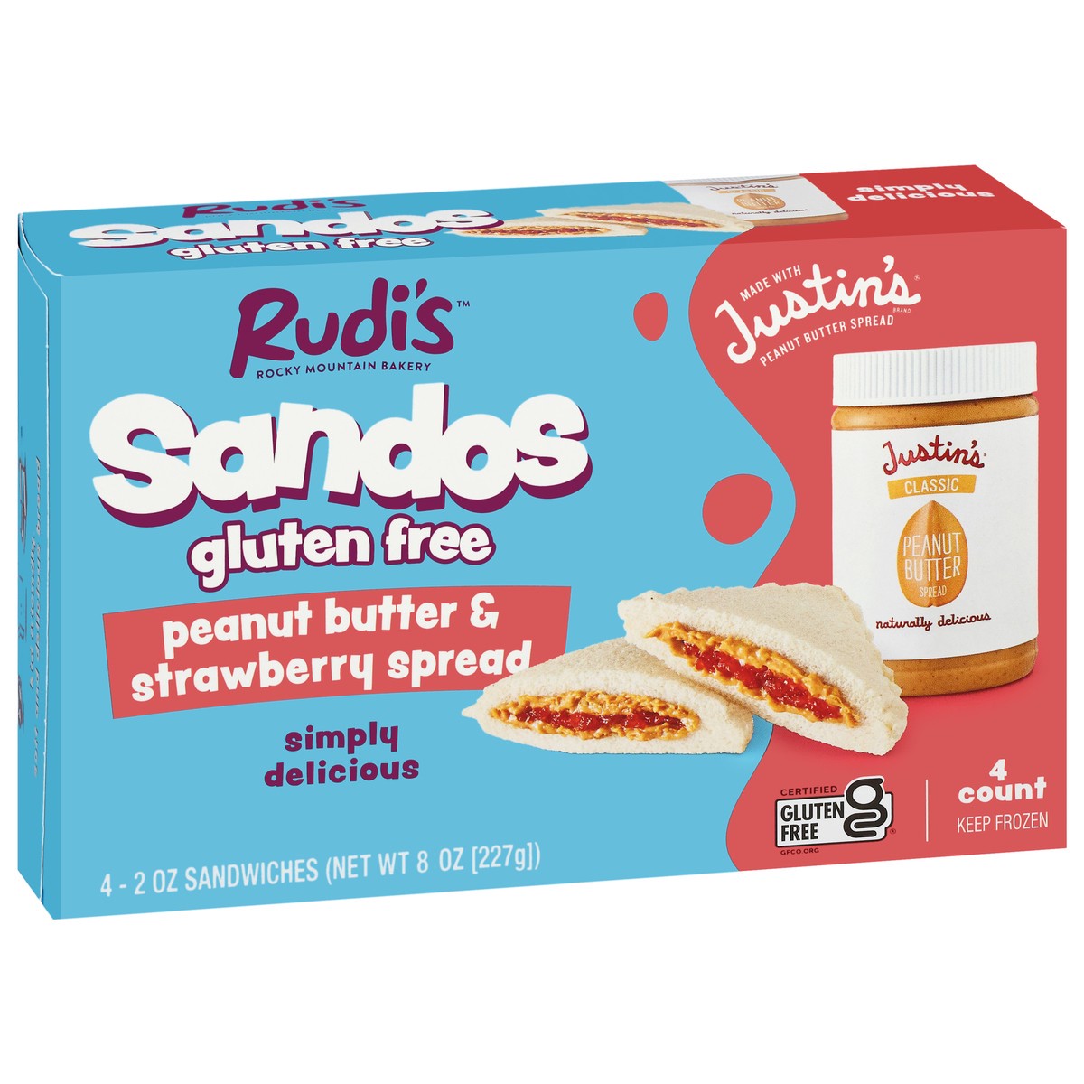 Rudi's Gluten Free Peanut Butter & Strawberry Spread Sandwiches - 4 - 2 oz Each