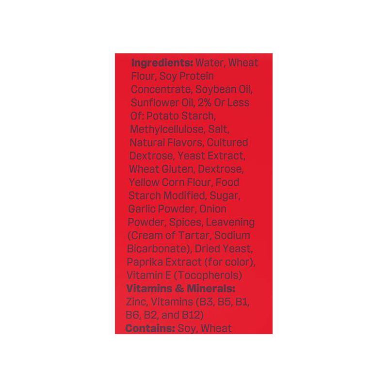 Water, Wheat Flour, Soy Protein Concentrate, Soyl , Oil, Sunflower Oil, 2% Or Less Of: Potato Starch, Methylcellulose, Salt, Natural Flavors, Cultured Dextrose, Yeast Extract, Wheat Gluten, Dextrose, …