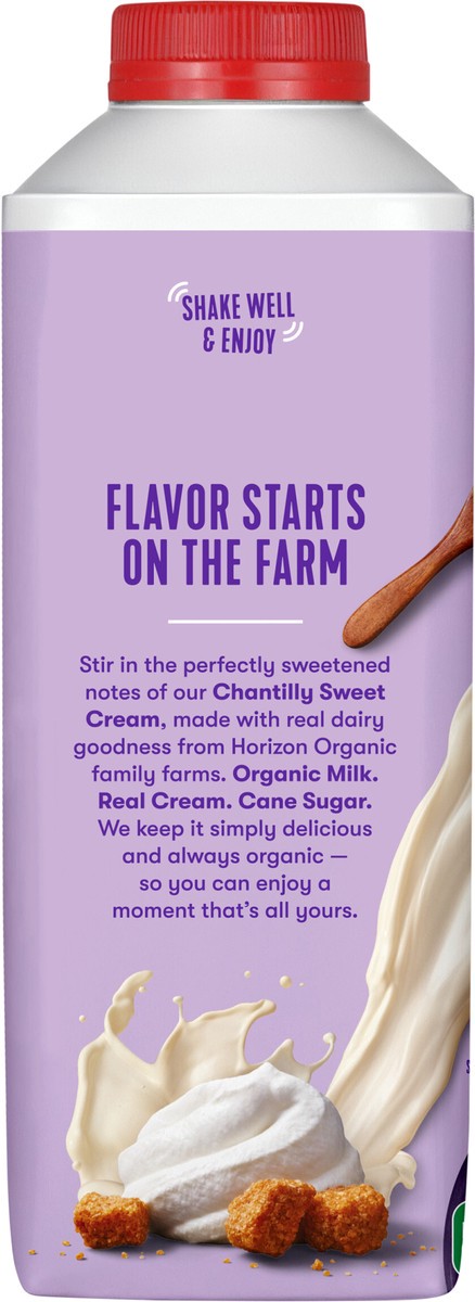 - DELICIOUSLY CREAMY: One 24 fl oz carton of Horizon Organic Real Dairy Chantilly Sweet Cream Coffee Creamer made with organic milk and cream adds rich flavor to your favorite coffee beverages