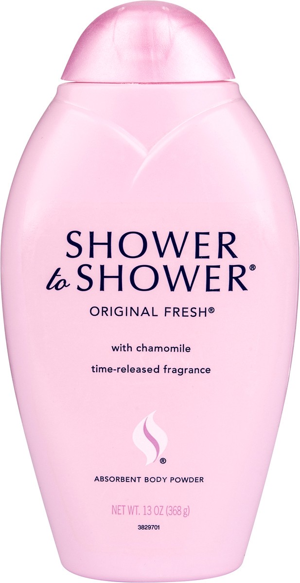 Original Fresh with Chamomile. Time-released fragrance. Enjoy the ultimate freshness while pampering your skin with Shower to Shower Original Fresh Absorbent Body Powder. Original Fresh combines the e…