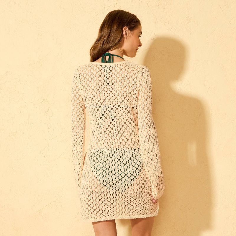 Women's Crochet Long Sleeve Short Dress Cover Up - Shade & Shore™ Cream XS