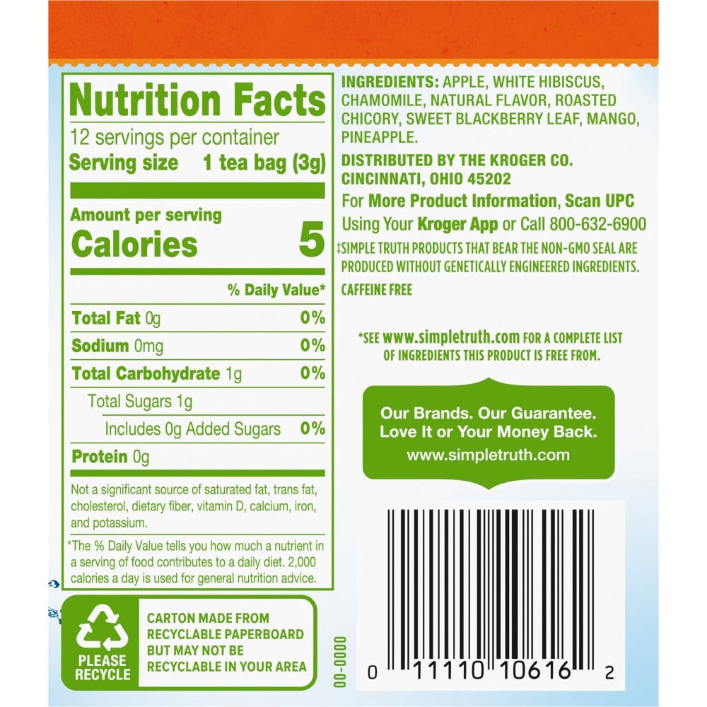 Simple Truth® Pineapple Mango Herbal Pyramid Tea Bags offer a flavorful experience. Crafted from quality ingredients, you'll love its mouthwatering flavor. It steeps in cold water and is caffeine free…
