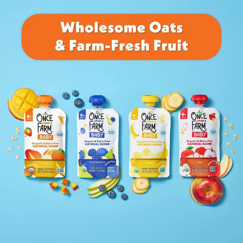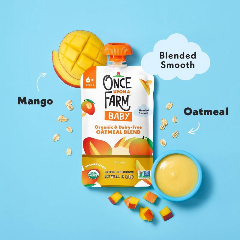 Once Upon a Farm Organic Oatmeal Mango Baby Food Pouch - 3.2oz: Cold Pressed, Limited Ingredients, Toddler Snack