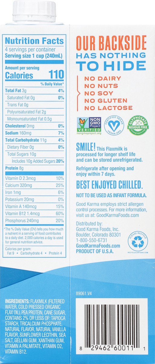 Good Karma Flaxmilk Omega 3 + Protein Lightly Sweetened Vanilla Carton - 32 Oz