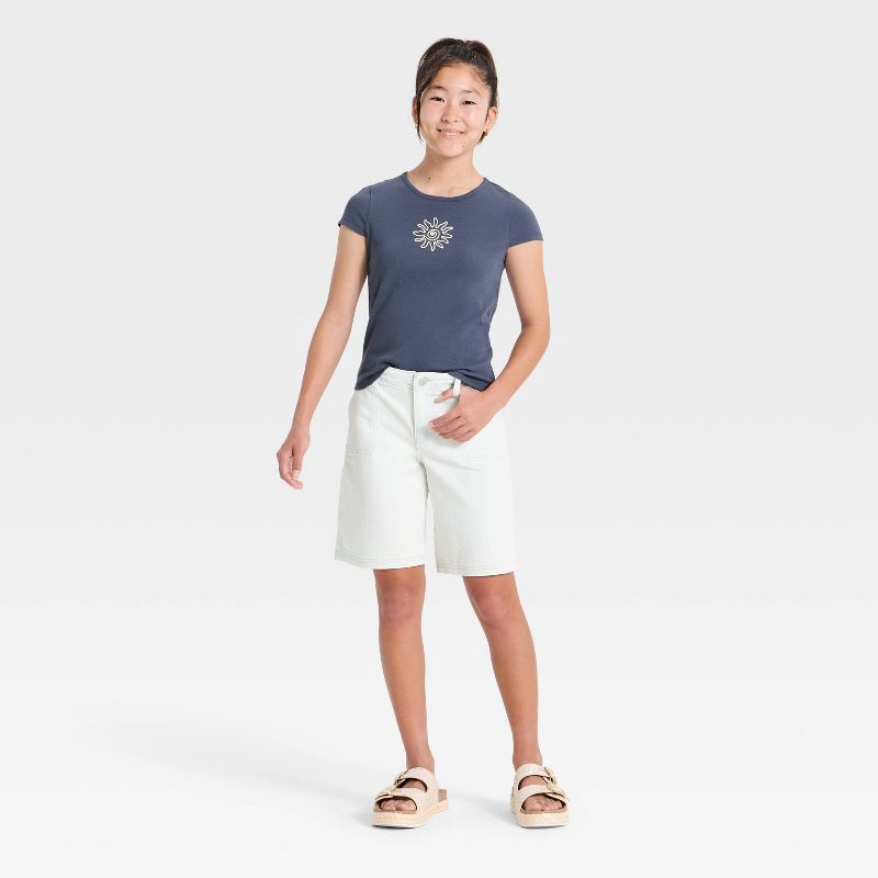 Girls' Embroidery Short Sleeve Baby T-Shirt 4th Of July Sunshine Graphic Baby T-Shirt - art class™ Dark Blue XL