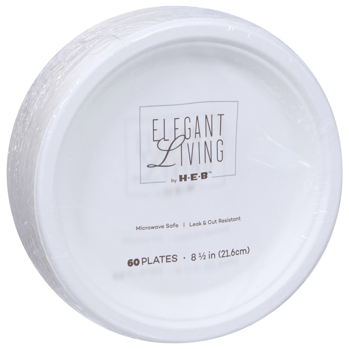 Elegant Living by HEB offers a convenient, tasteful tableware solution that allows you to spend more time on what truly matters Made of sugarcane and 100 compostable. Microwave safe. Leak cut resista…