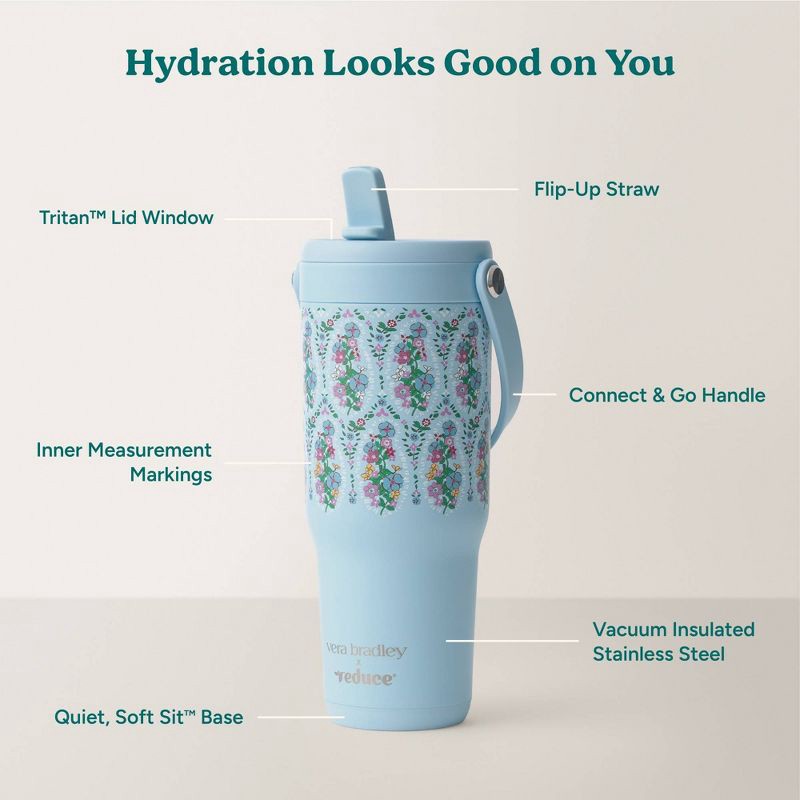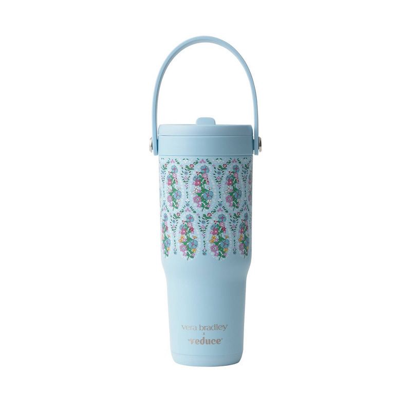 Reduce x Vera Bradley 24oz Chiller Go Leak Proof Stainless Steel Insulated Straw Tumbler Garden Paisley Blue