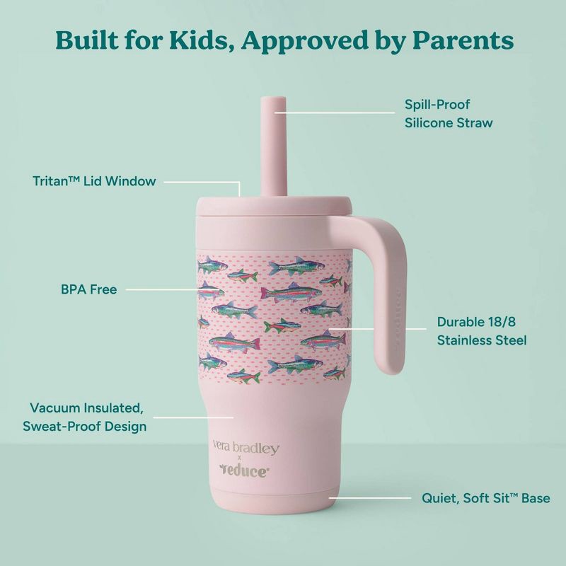 Reduce x Vera Bradley 14oz Chiller Kids Spill Proof Stainless Steel Insulated Straw Tumbler Lake Fishies