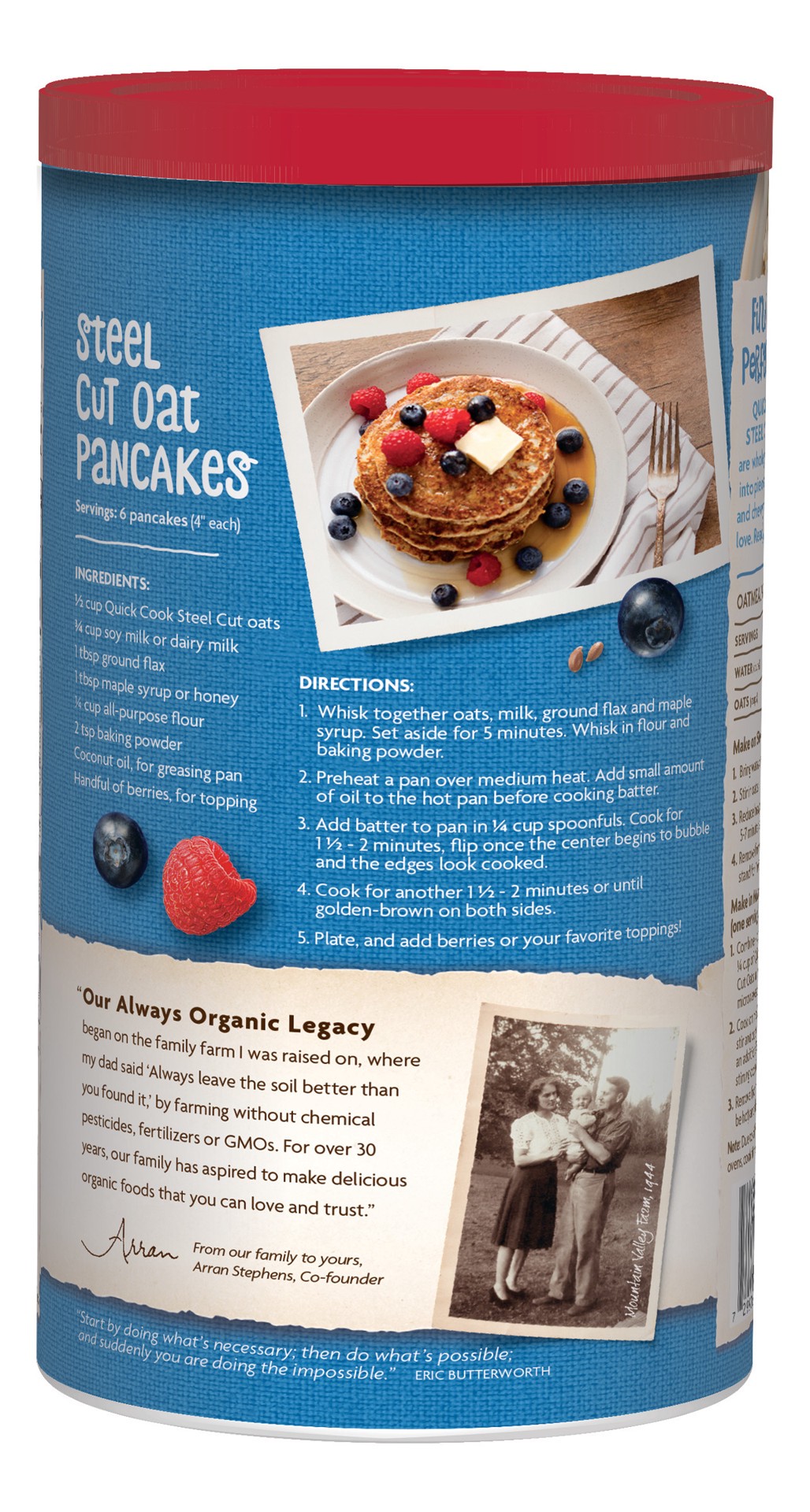 - A re-sealable canister of organic quick cooking