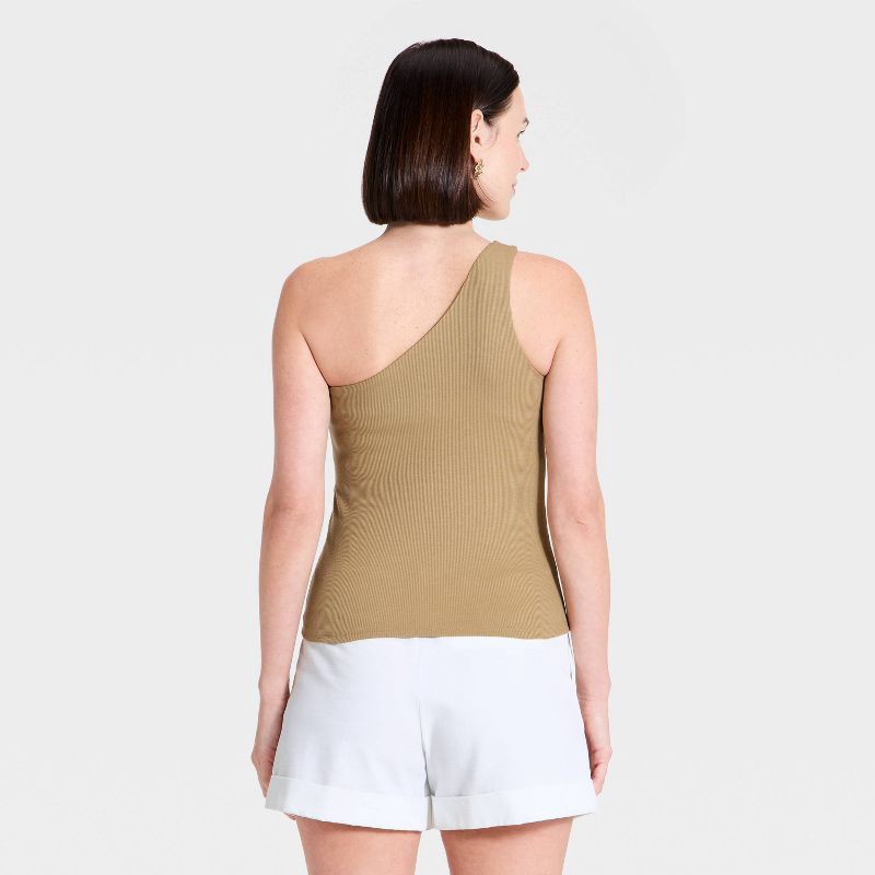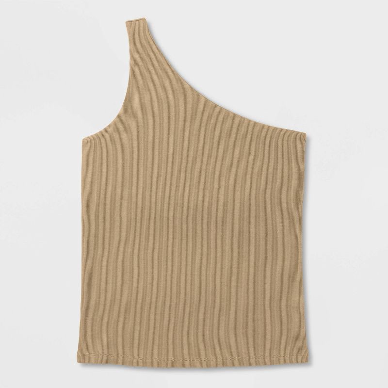 Women's One Shoulder Rib Knit Tank Top - A New Day™ Tan XL