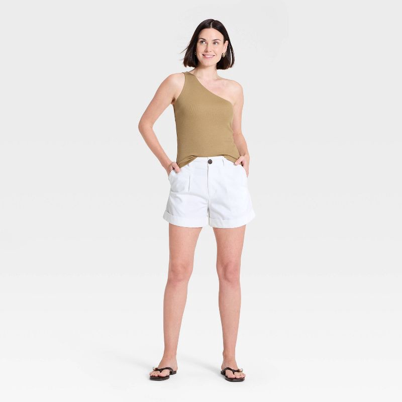 This One-Shoulder Rib-Knit Tank Top from A New Day™ makes a statement addition to your top collection. Made from a midweight fabric blend of cotton, rayon and spandex with lining, this ribbed tank top…