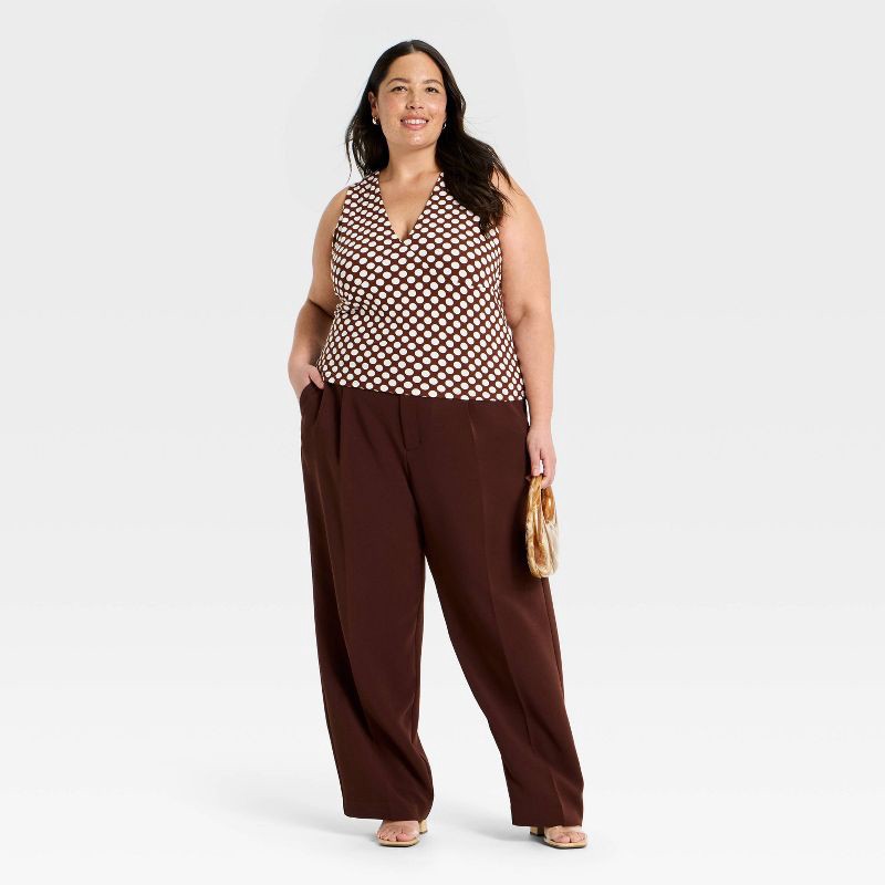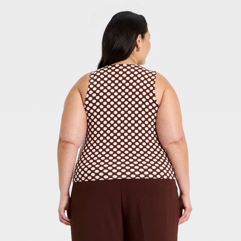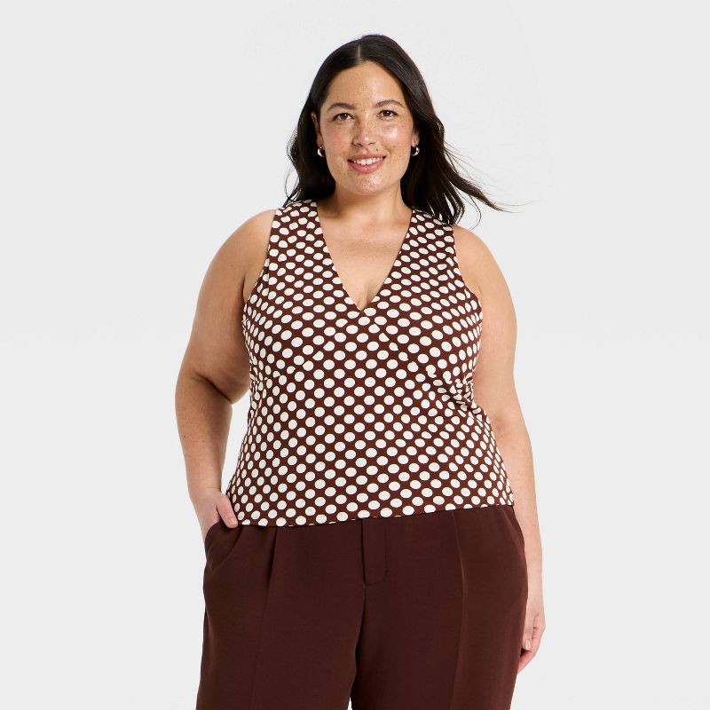 Women's V-Neck Tank Top - A New Day™ Brown/Cream Dot XXL