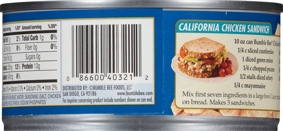 Bumble Bee Chicken Breast Chunk With Rib Meat In Water - 10 Oz