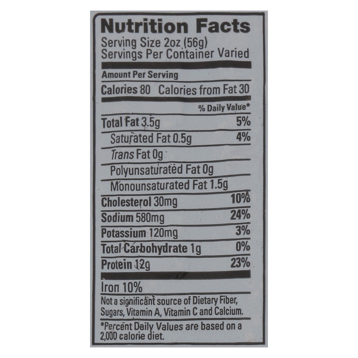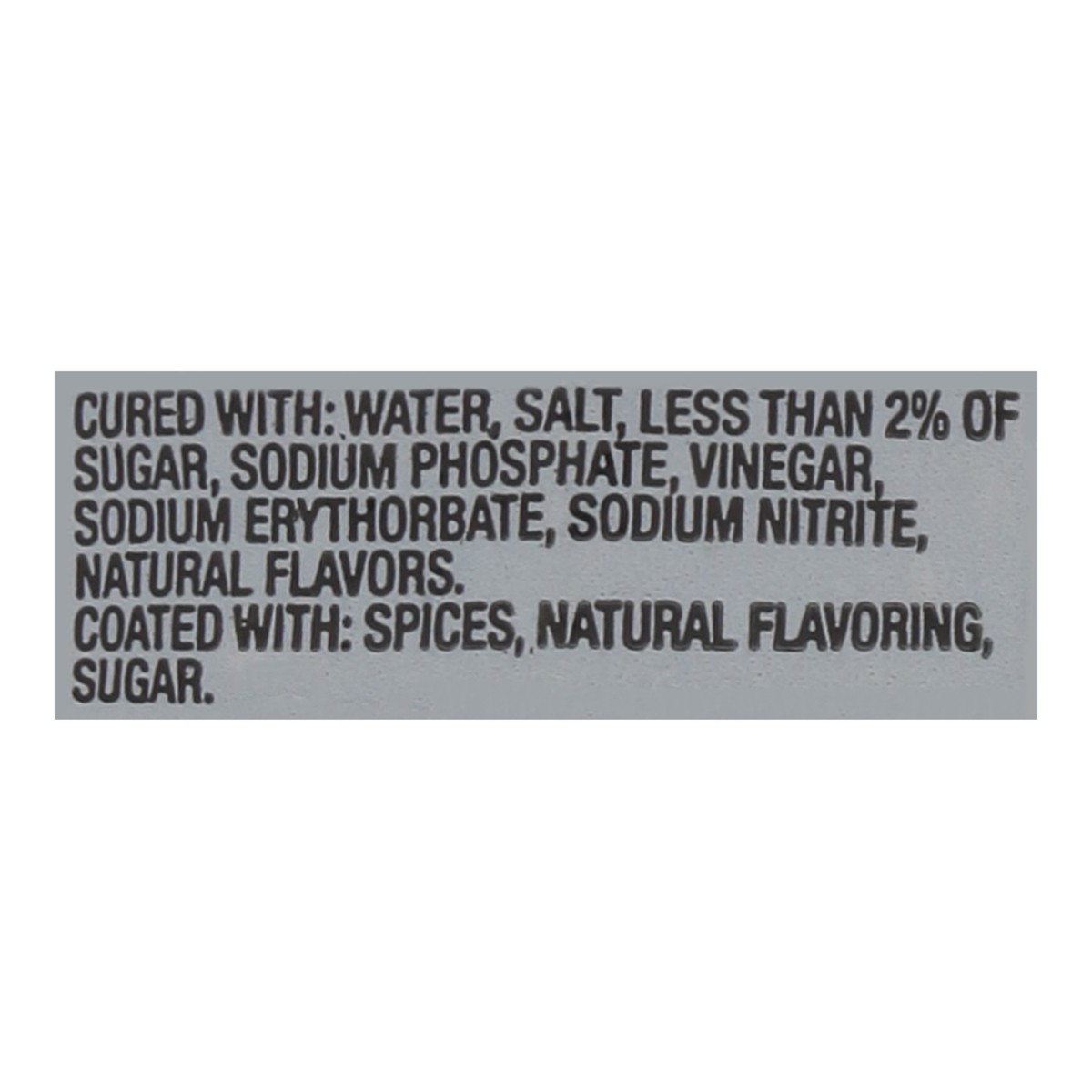 Cured with: Water, Salt, Less than 2% of Sugar, Sodium Phosphate, Vinegar, Sodium Erythorbate, Sodium Nitrite, Natural Flavors. Coated with: Spices, Natural Flavoring, Sugar.