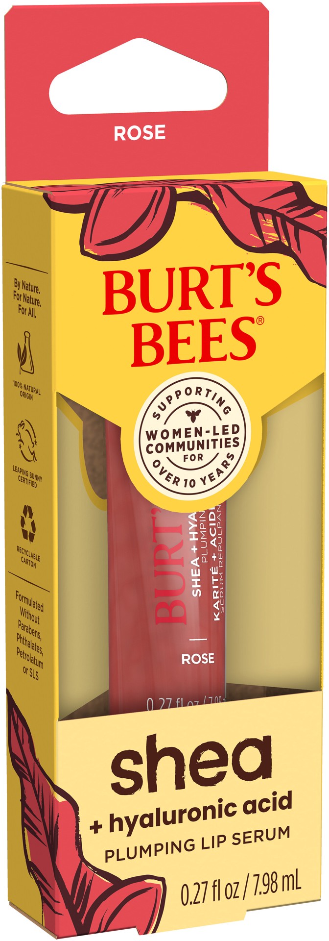 - NATURAL LIP TREATMENT: One 0.27 oz. tube of Burt's Bees Shea + Hyaluronic Acid Plumping Lip Serum that conditions and plumps lips while delivering semi-sheer color and big shine