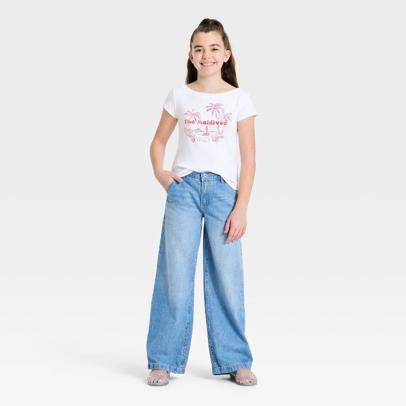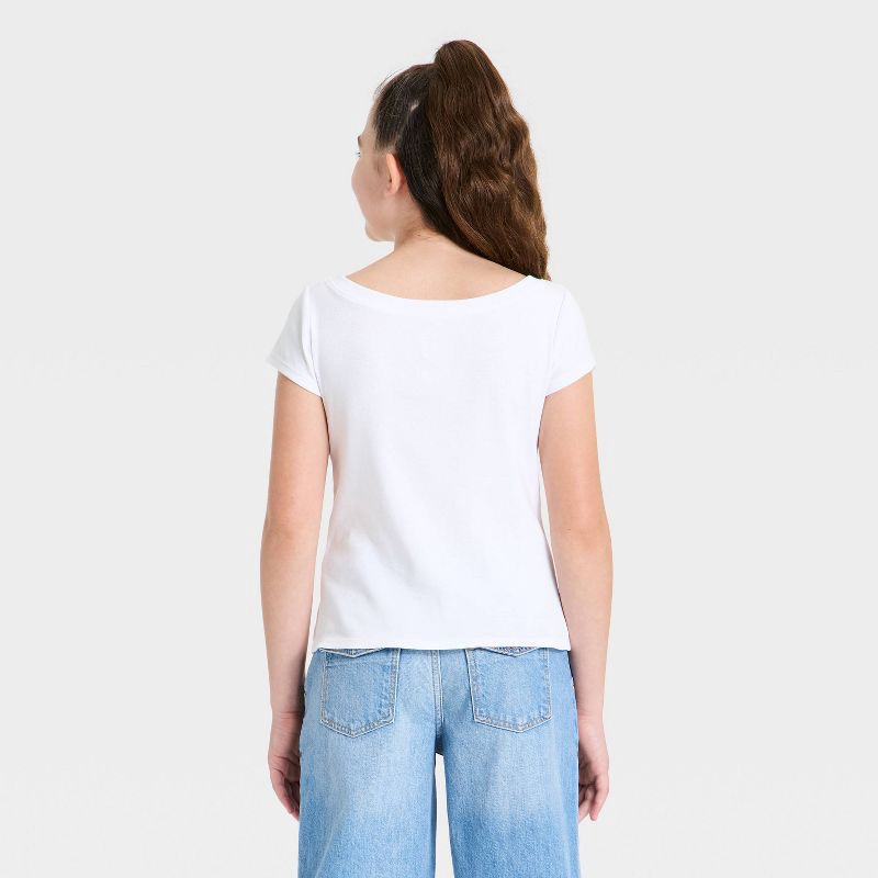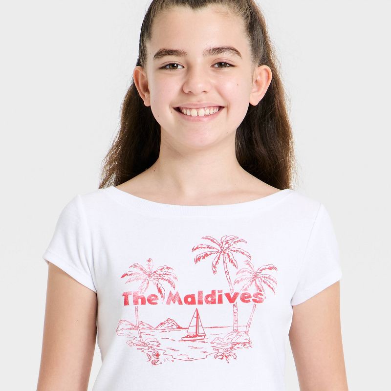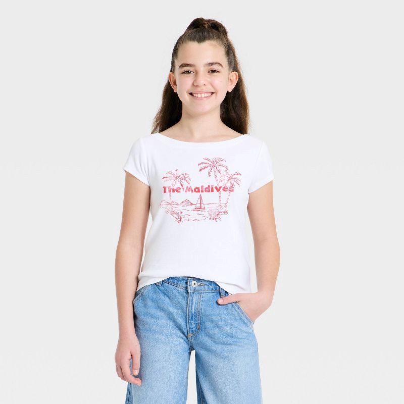 Girls' Boat Neck Short Sleeve “The Maldives” Graphic Baby T-Shirt - art class™ White S