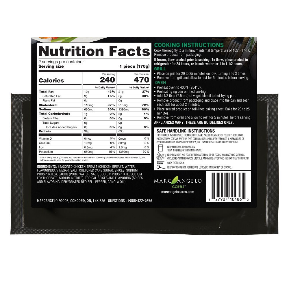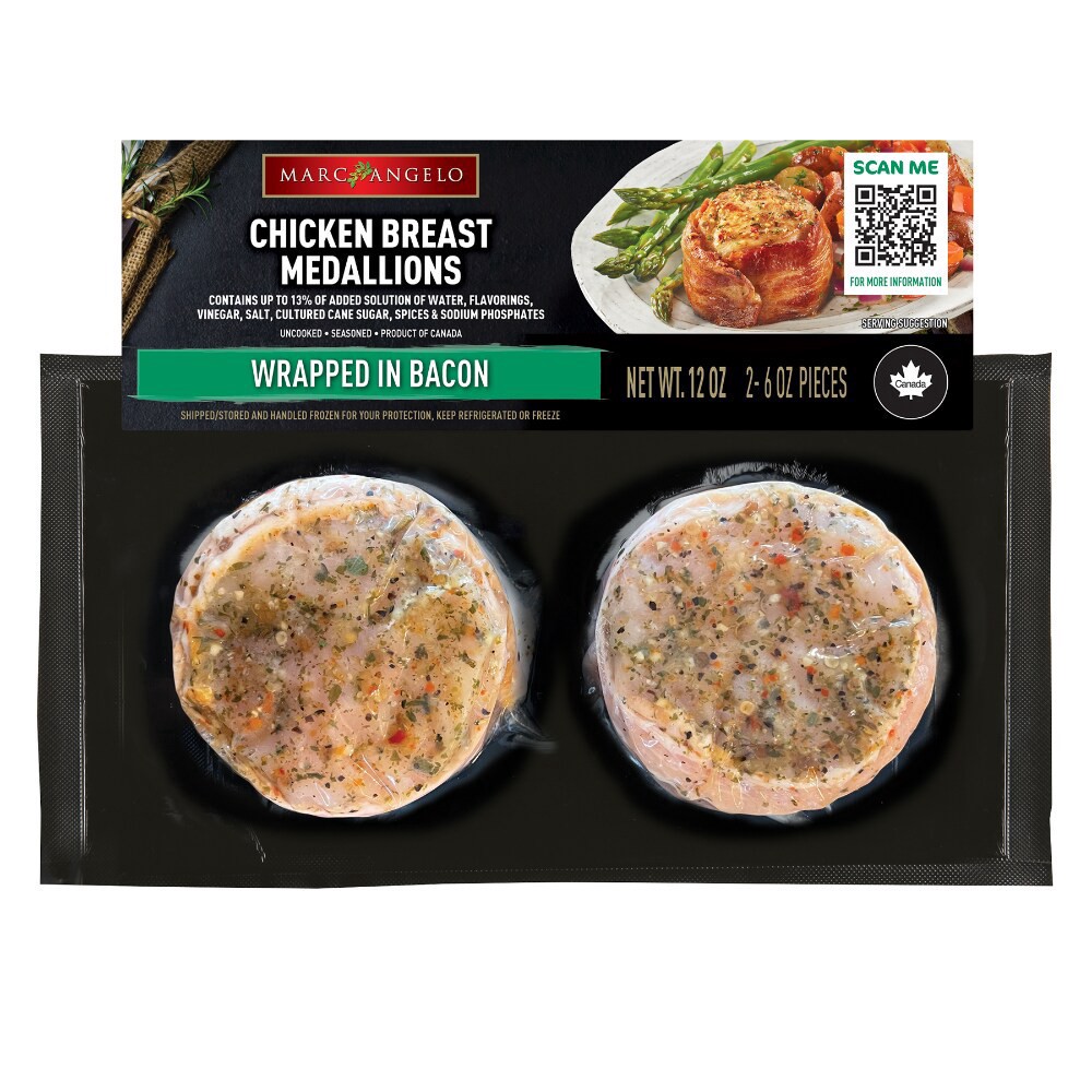 Our savory Marcangelo chicken medallions wrapped with bacon is perfect for a quick and tasty weeknight dinner with your family. Raised without the use of Antibiotics. 2 x 6 oz medallions (12 oz Retail…