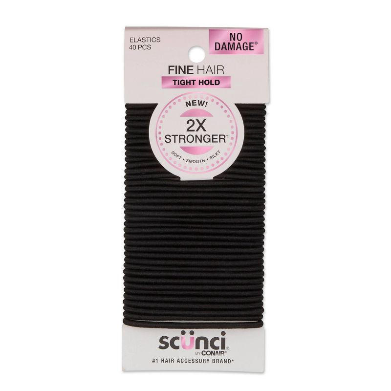 scunci scünci No Damage 2X Stronger Elastic Hair Ties - Black - Fine Hair - 3mm - 40pcs: Hair Styling, All Hair Types