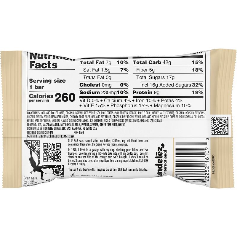 CLIF Bar White Chocolate Macadamia Granola Protein Bar Made with Organic Oats - 9g Protein - 2.4oz