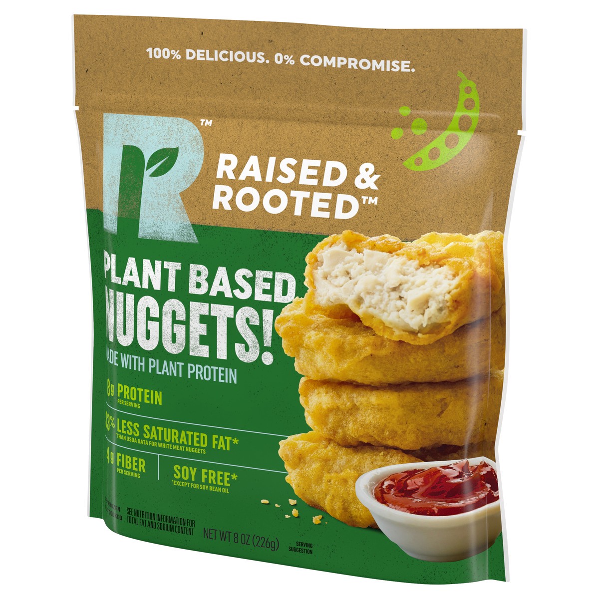 Bring the power of plants into everyday eating with Raised and Rooted Plant Based Nuggets. With the crispiness and flavor you love and 33% less saturated fat than traditional white meat chicken nugget…