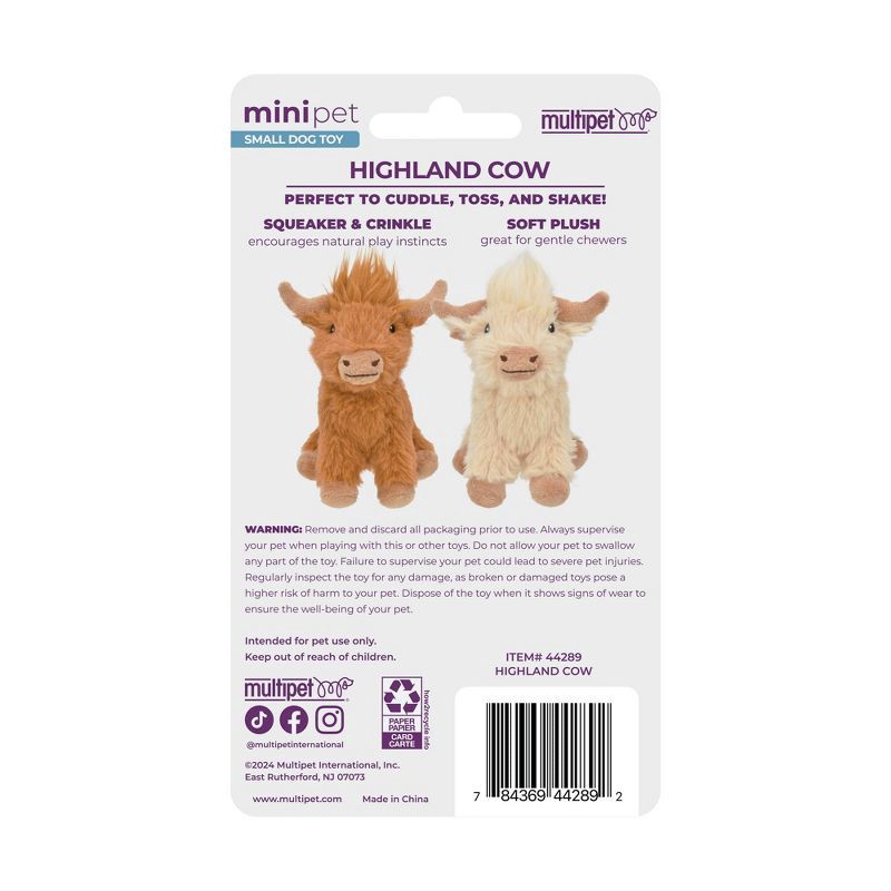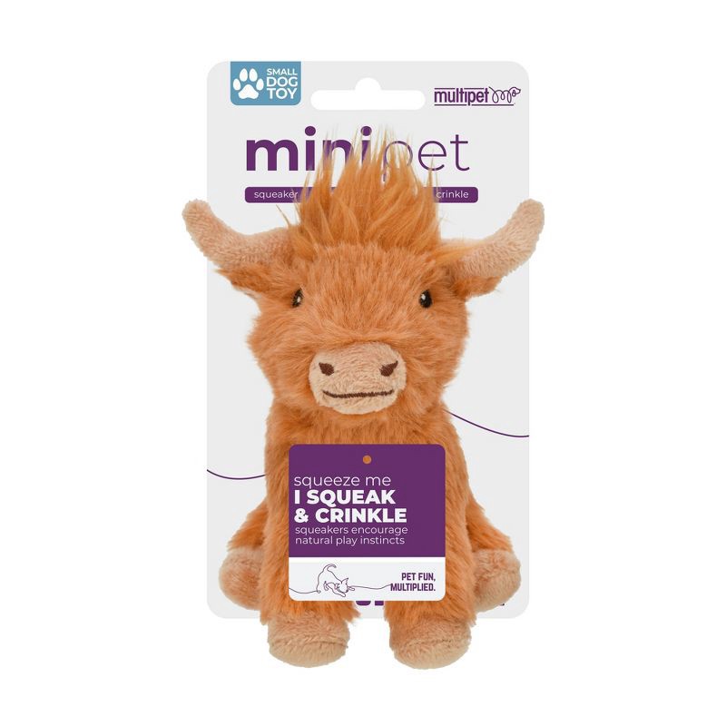 Multipet 5" Highland Cow Interactive Plush Dog Toy: All Ages, Pet Toy, Occupy, Cuddle