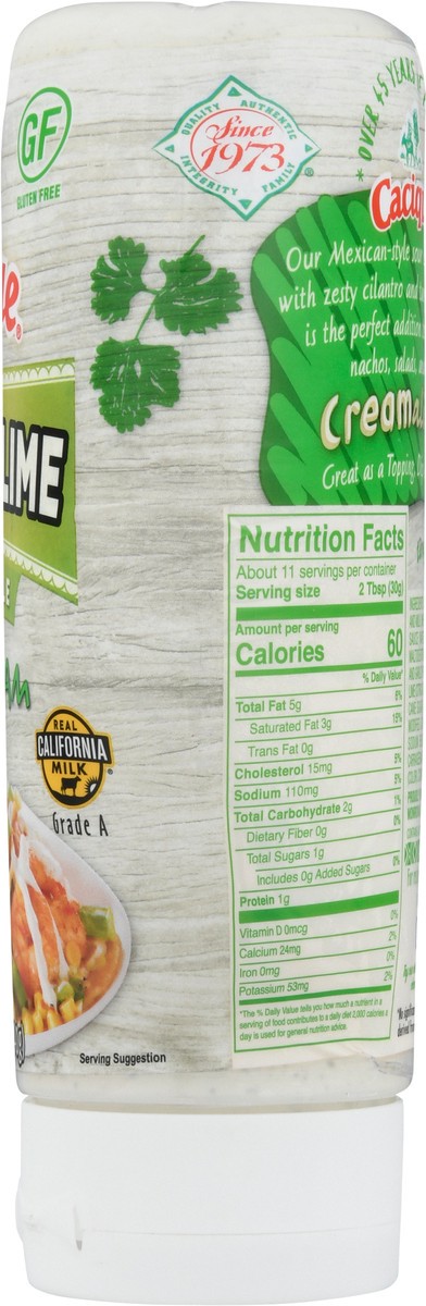 Real California milk. Over 45 years of flavor. Our Mexican-style sour cream infused with zesty cilantro and tangy lime flavor is the perfect addition to your tacos, nachos, salads, and more! Creamalic…