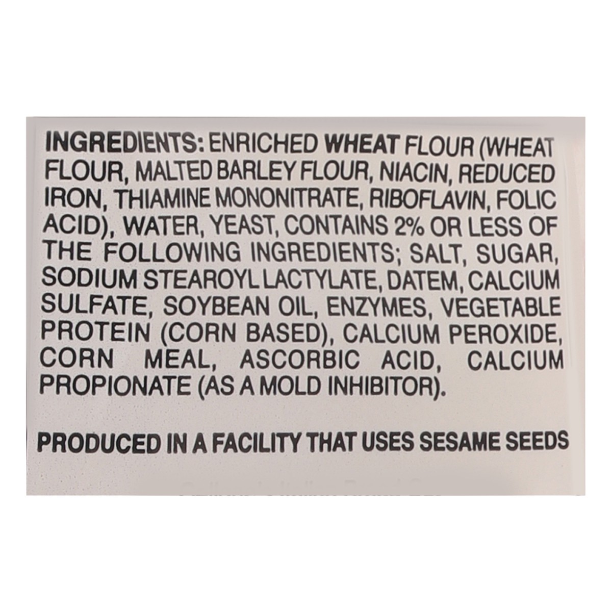 Enriched Wheat Flour (Wheat Flour, Malted Barley Flour, Niacin, Reduced Iron, Thiamine Mononitrate, Riboflavin, Folic Acid), Water, Yeast, Contains 2% or Less of The Following Ingredients: Salt, Sugar…