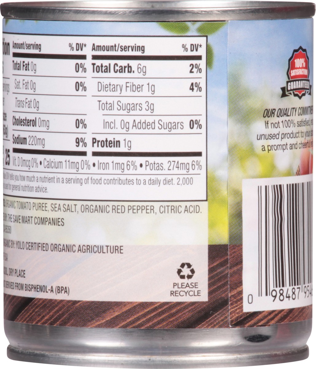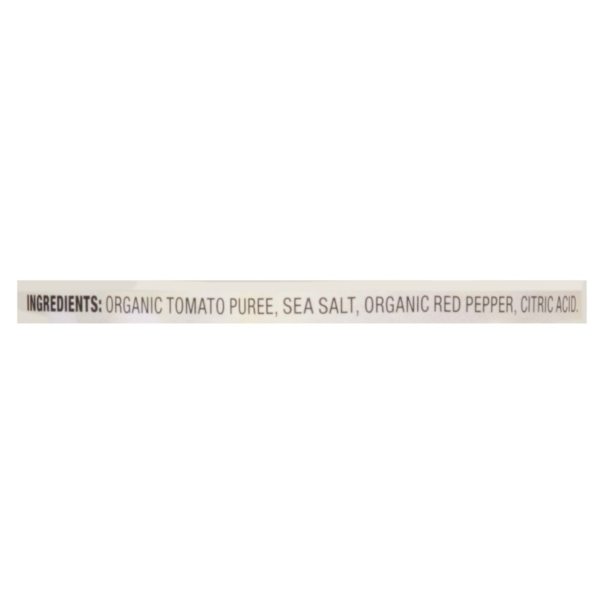 Organic Tomato Puree, Sea Salt, Organic Red Pepper, Citric Acid.