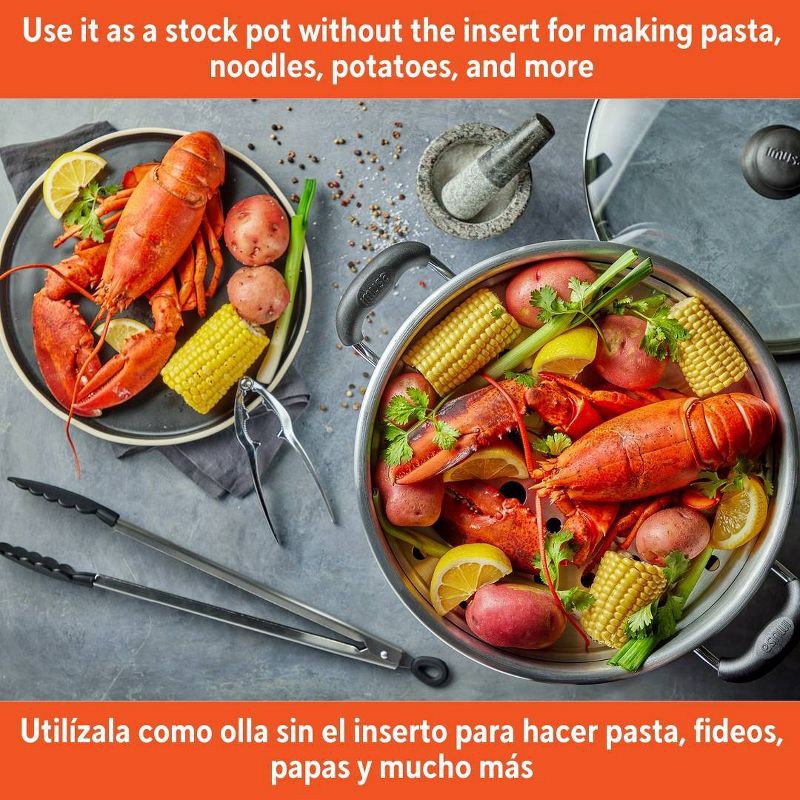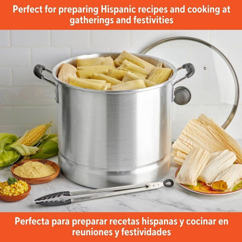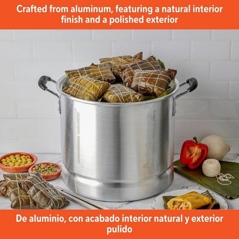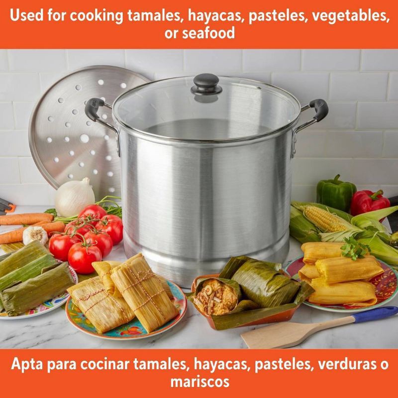 - VERSATILE: Perfect for steaming tamales, vegetables, and seafood, can also function as a stock pot without the insert, making it ideal for pasta, noodles, potatoes, and more. LARGE BATCH COOKING ESSENTIAL: This steamer is designed to accommodate gatherings and festive occasions, making it ideal for preparing Hispanic recipes and meals in generous quantities