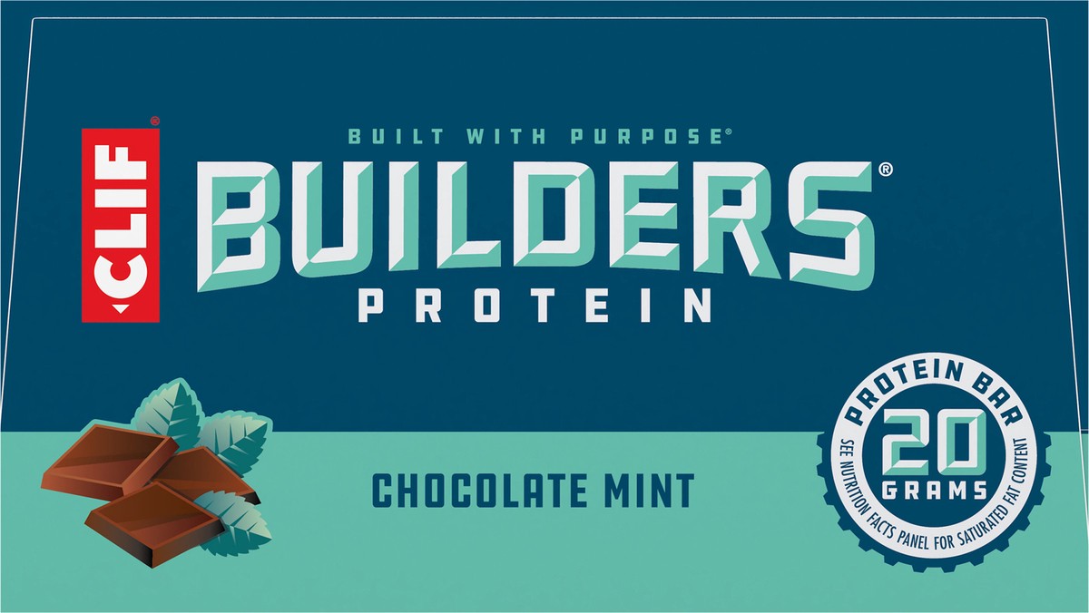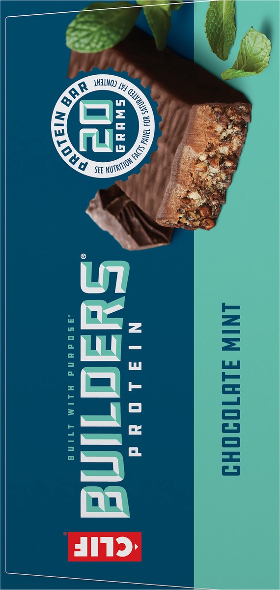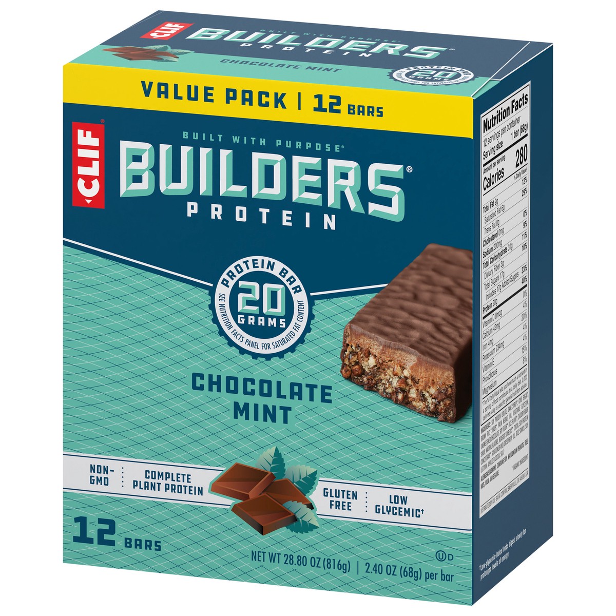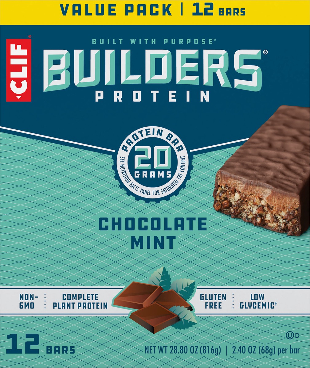 CLIF BUILDERS Protein Bars - Chocolate Mint Flavor - 20g Plant Based Protein - Gluten Free - Non-GMO - Low Glycemic - No Artificial Sweeteners - Value Pack, 2.4 oz. (12 Count)