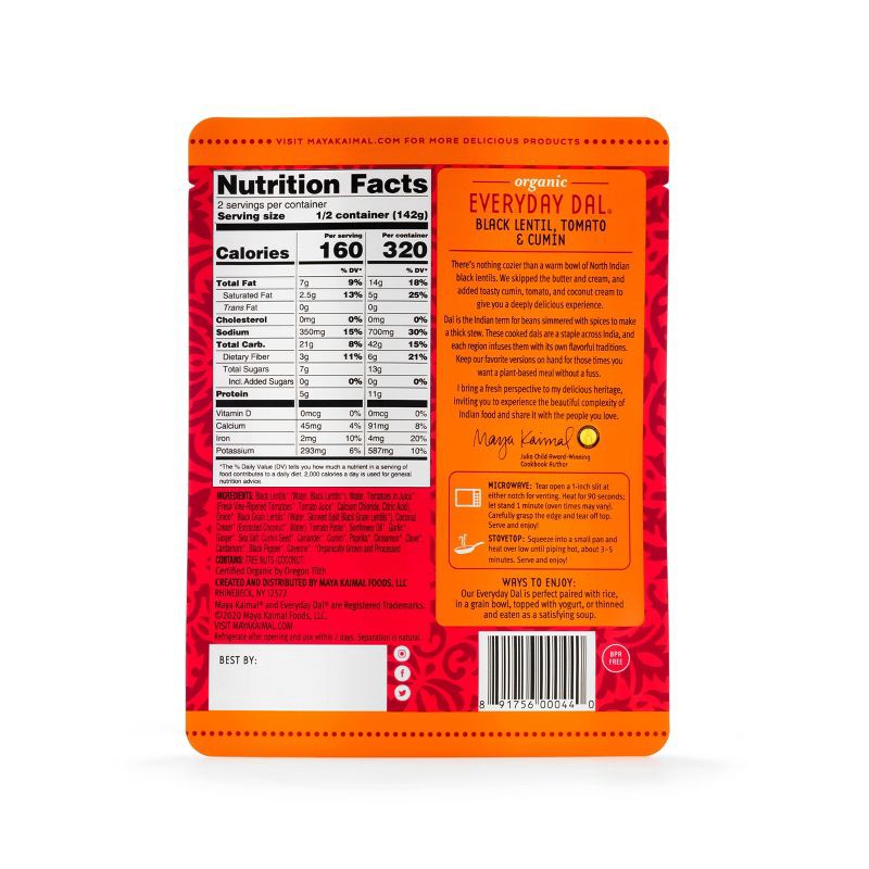 Maya Kaimal's Black Lentil Dal is inspired by the North Indian “dal makhani”. Simmered with tomato and spices, including cumin and cardamom for a deep, earthy flavor. Enjoy on its own or with any vegg…