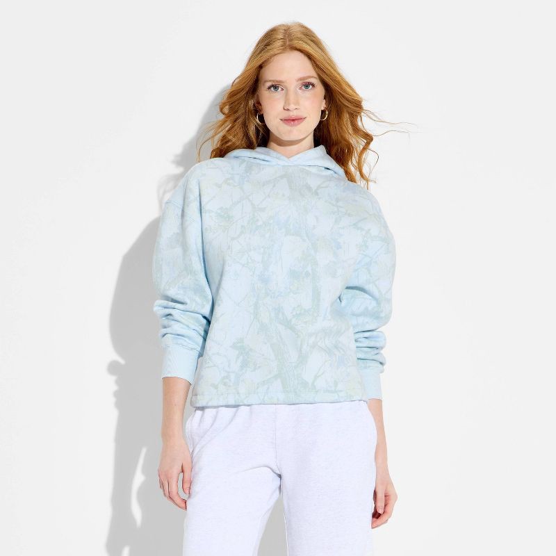 Women's Hooded Bungee Pullover Sweatshirt - Wild Fable™ Light Blue Camo XL