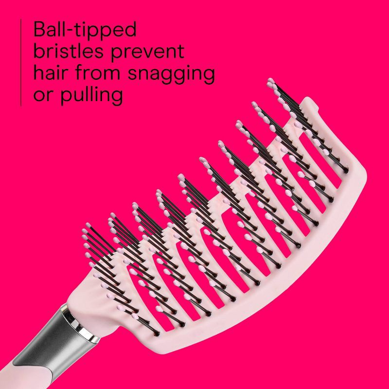 - Ball-tipped bristles gently glide through wet or dry hair without snagging