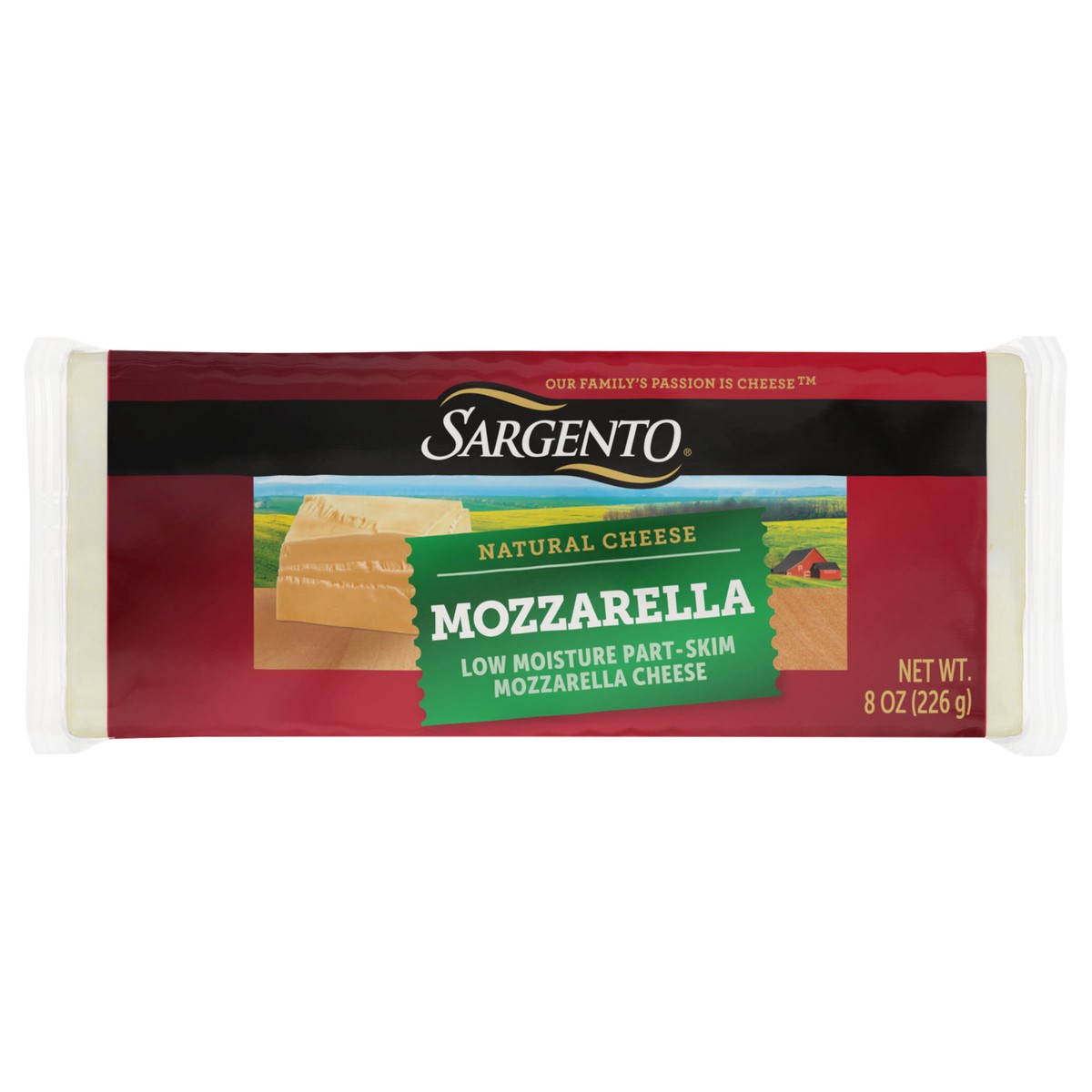 - This 8 oz block of Sargento Block Low Moisture Part-Skim Mozzarella Natural Cheese is perfect for pizzas