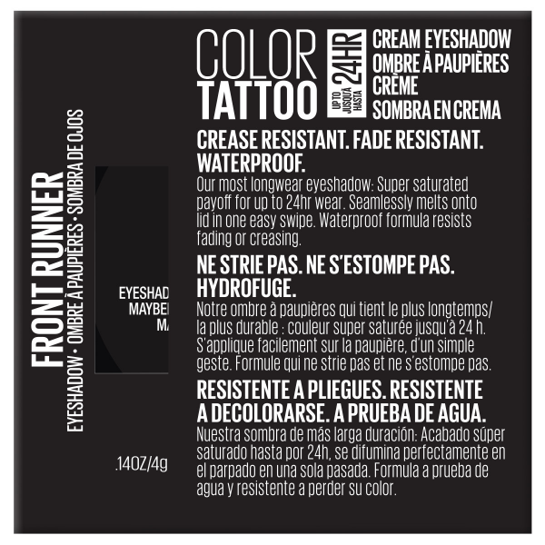 Up to 24 hr. Crease resistant. Fade resistant. Our most long wear eyeshadow. Super saturated payoff for up to 24 hr wear. Seamlessly melts onto lid in one easy swipe. Waterproof formula resists fading…