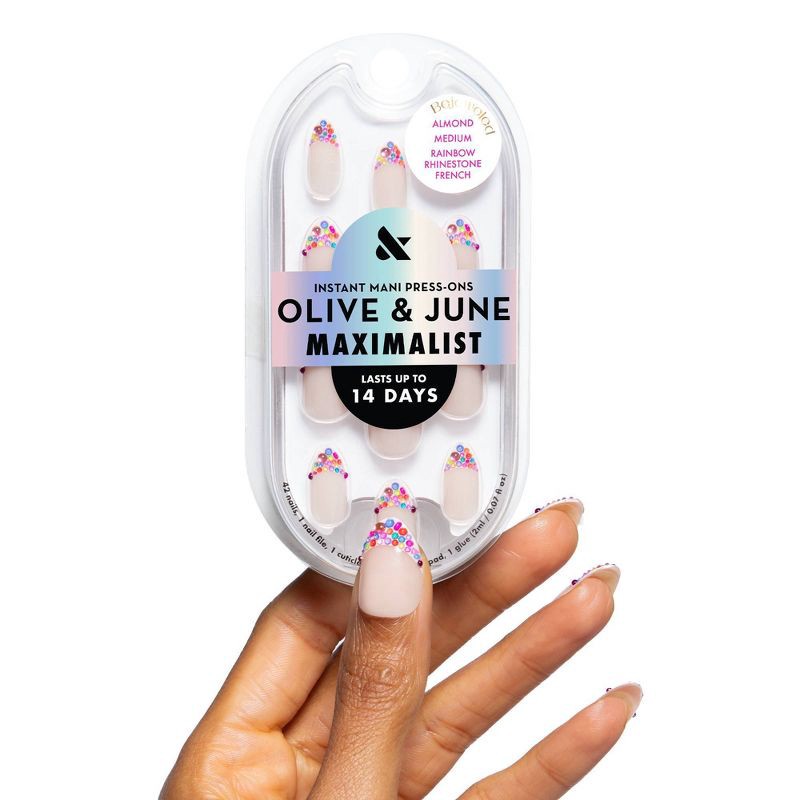 Olive & June Press-On Fake Nails - Maximalist Jewelry - M Almond - Rainbow Rhinestone French - 42ct