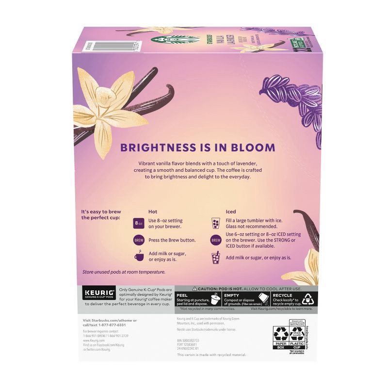 - PREMIUM COFFEE IN A K-CUP POD: Enjoy the Starbucks coffee you love at home with a box of 22 Vanilla Lavender Flavored Coffee K-Cup pods, designed for Keurig coffee makers