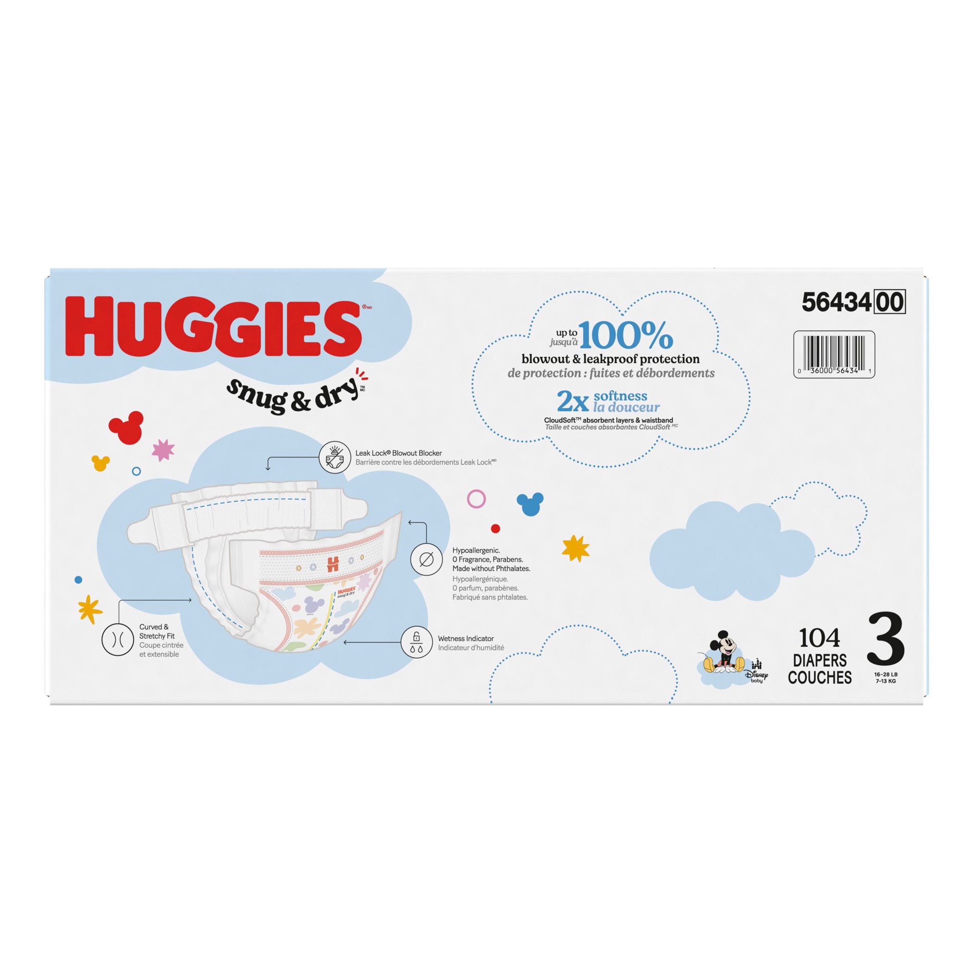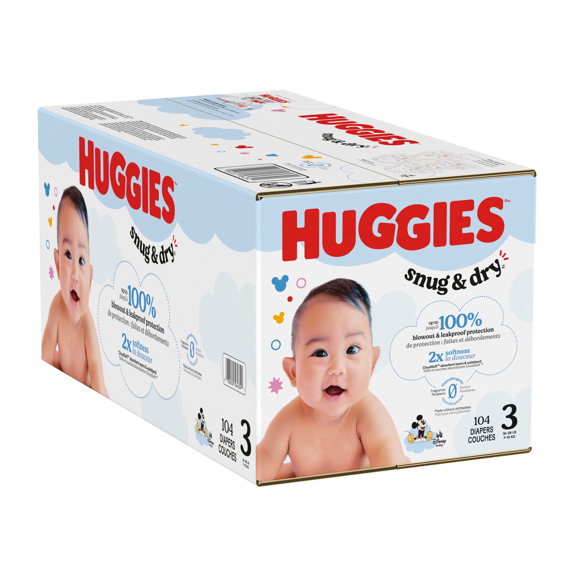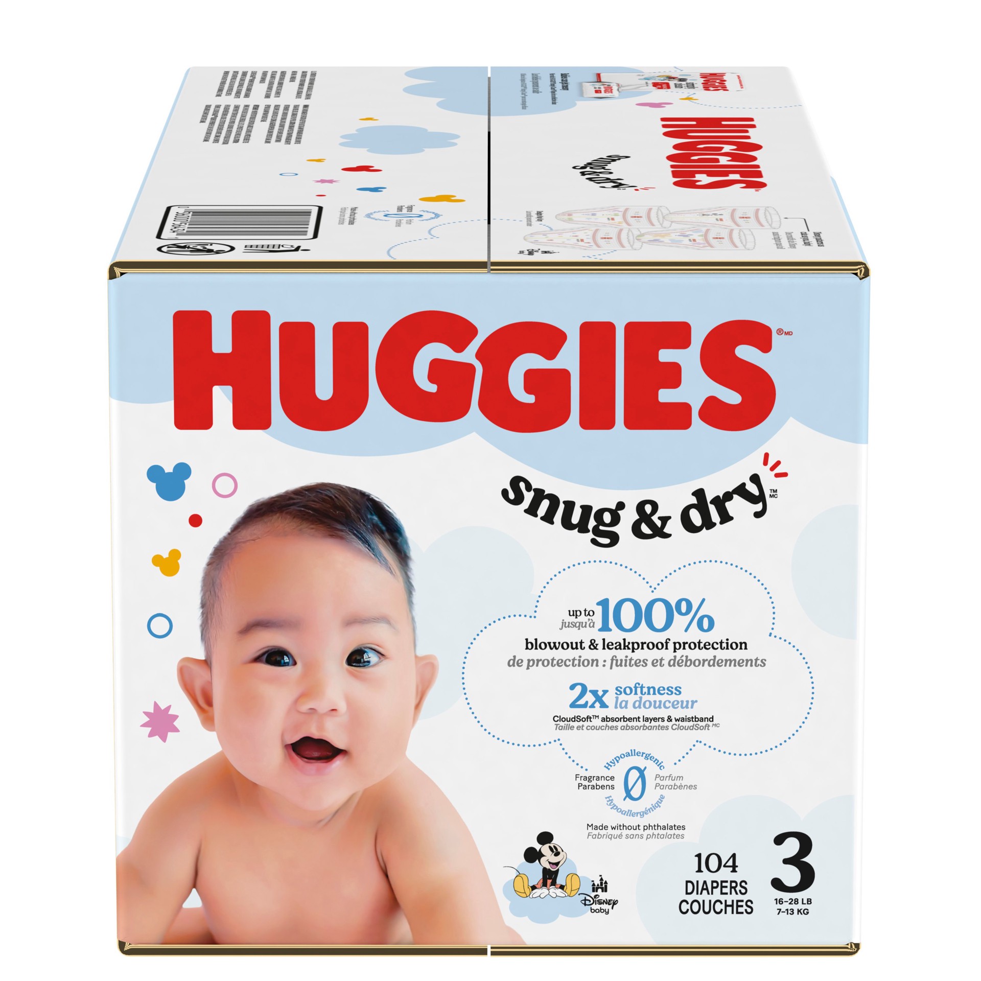 Our NEW Snug & Dry diapers are designed with 2x softness: CloudSoft absorbent layers and waistband and a curved and stretchy fit. Softer than the leading premium diaper, more parents choose Huggies Sn…
