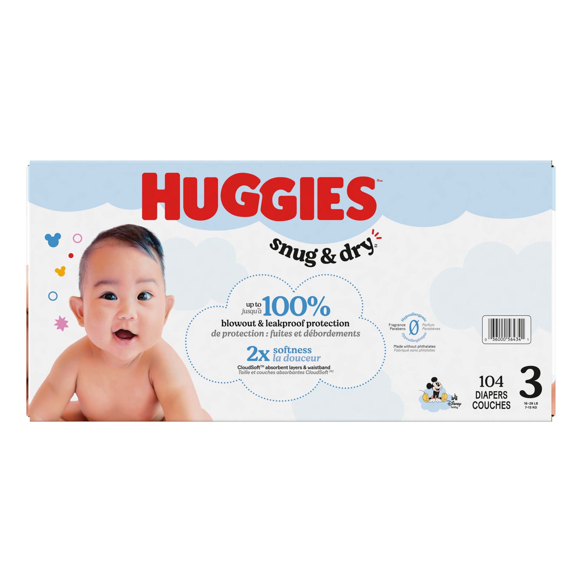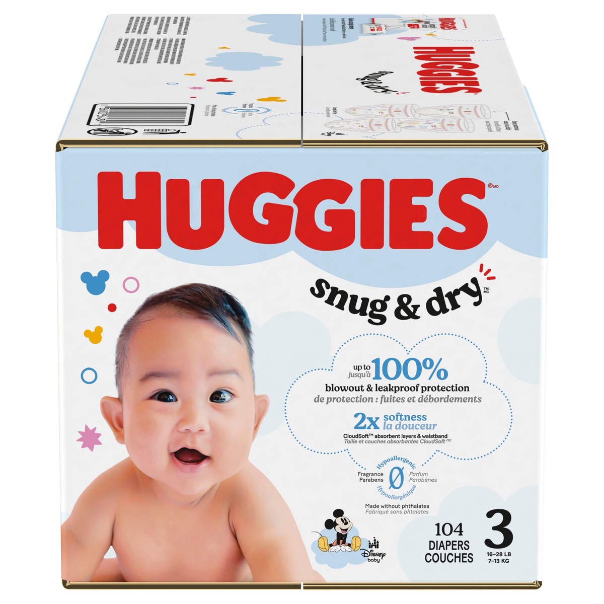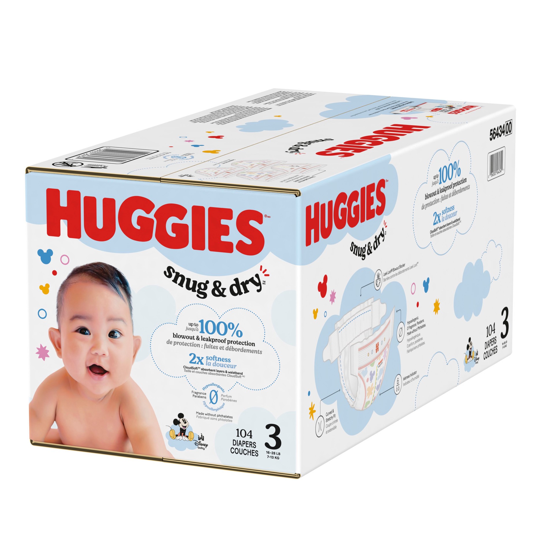 Our NEW Snug & Dry diapers are designed with 2x softness: CloudSoft absorbent layers and waistband and a curved and stretchy fit. Softer than the leading premium diaper, more parents choose Huggies Sn…